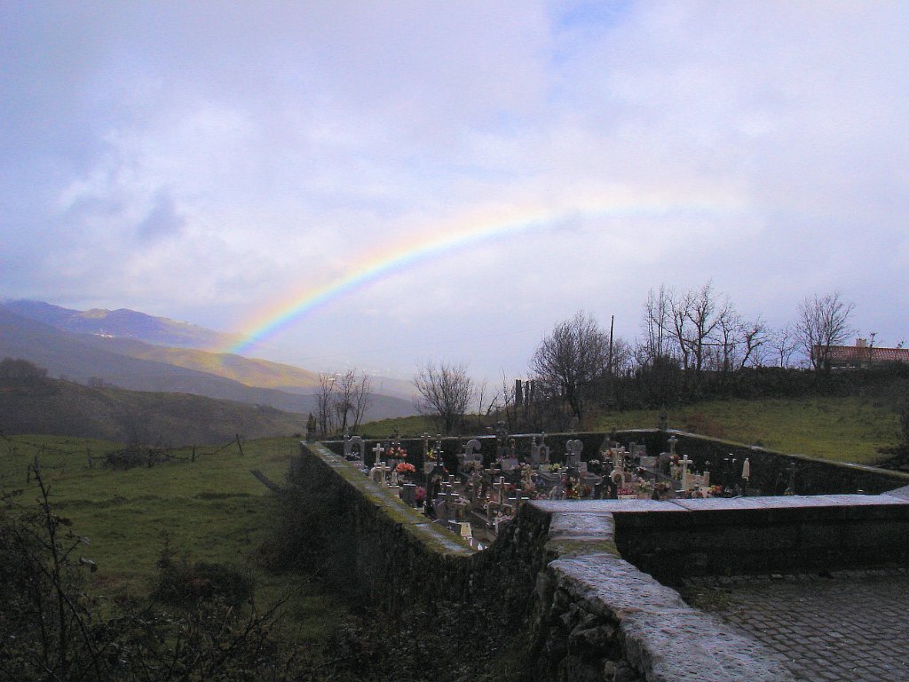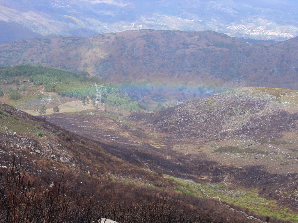 As nuvens baixas e carregadas de chuva, proporcionaram-nos registo dum belo arco-íris, mas escondiam quase completamente as vertentes da Amarela, desaconselhando qualquer aventura nessas paragens, pelo que o Miguel optou por fazer apenas o trilho do Germil, esquecendo a parte alta do percurso, mais distante da aldeia.