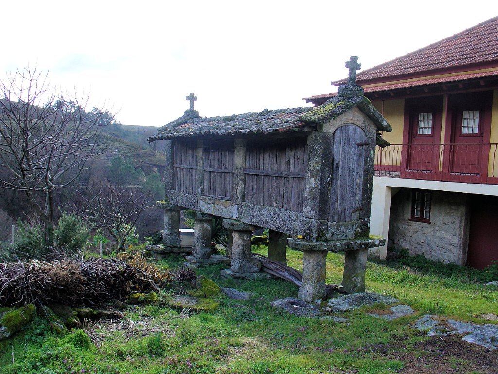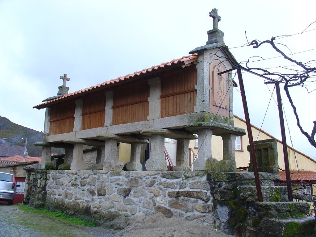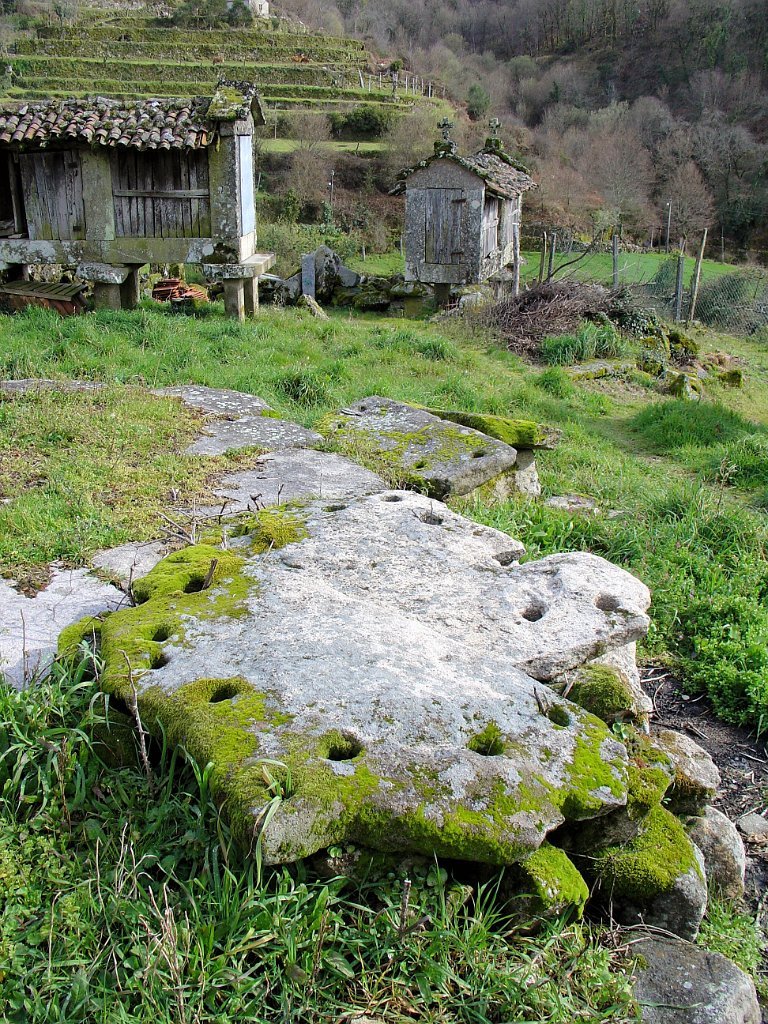 Chegados a Germil, fomos visitar a eira comunitária, com um interessante conjunto de espigueiros em pedra, em mau estado de conservação, e interessantes pedras furadas, bases de desaparecidos canastros de vara.