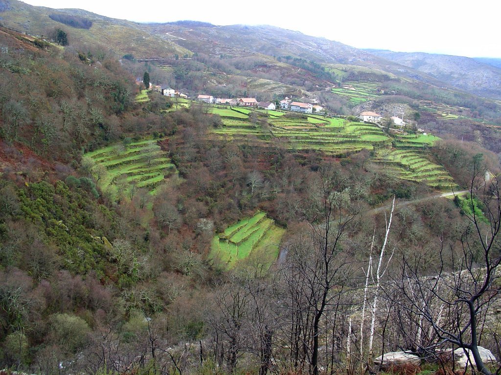 Foi bastante dura a subida final para Germil, mas lá fomos pelos caminhos atapetados de folhas e muros forrados de verdes musgos, que delimitam os campos abandonados, aqui e ali com vestígios de ruínas de socalcos e latadas tristemente abandonadas.