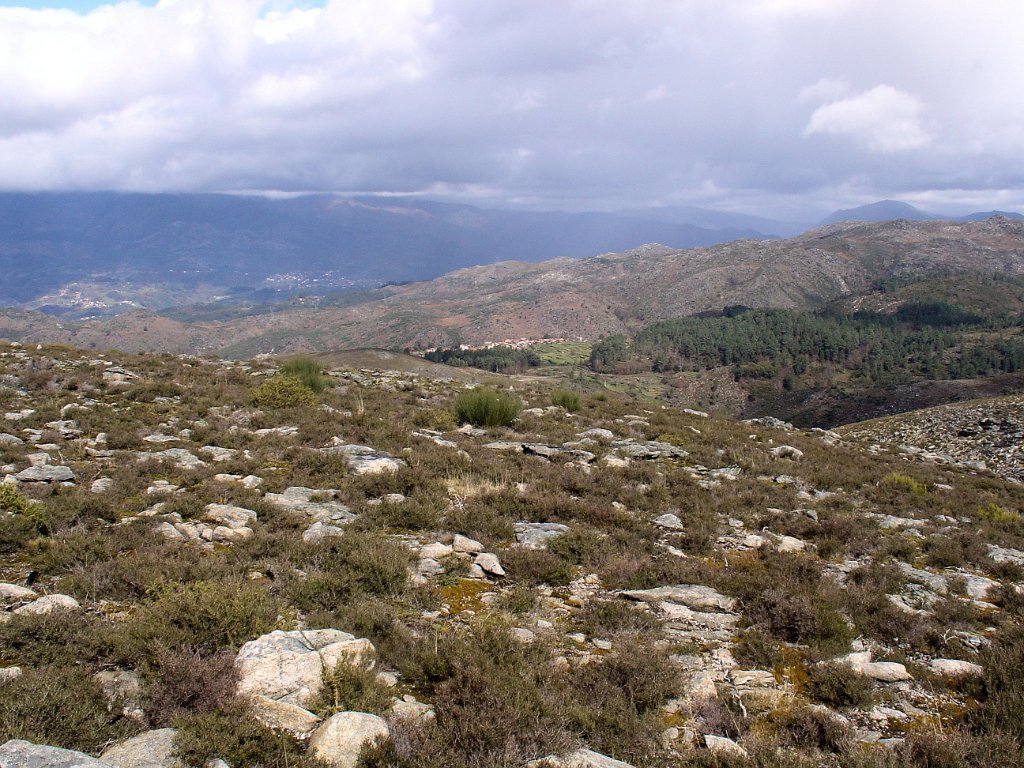 A custo, convencemos o Miguel a fazer a volta grande, pelo que continuamos a ascensão, sempre pela calçada rural, contornando a serra a até ao seu términus, continuando depois a “corta mato”, subindo até aos “malhões” do Germil, situados na encosta da Pedra da Janela.