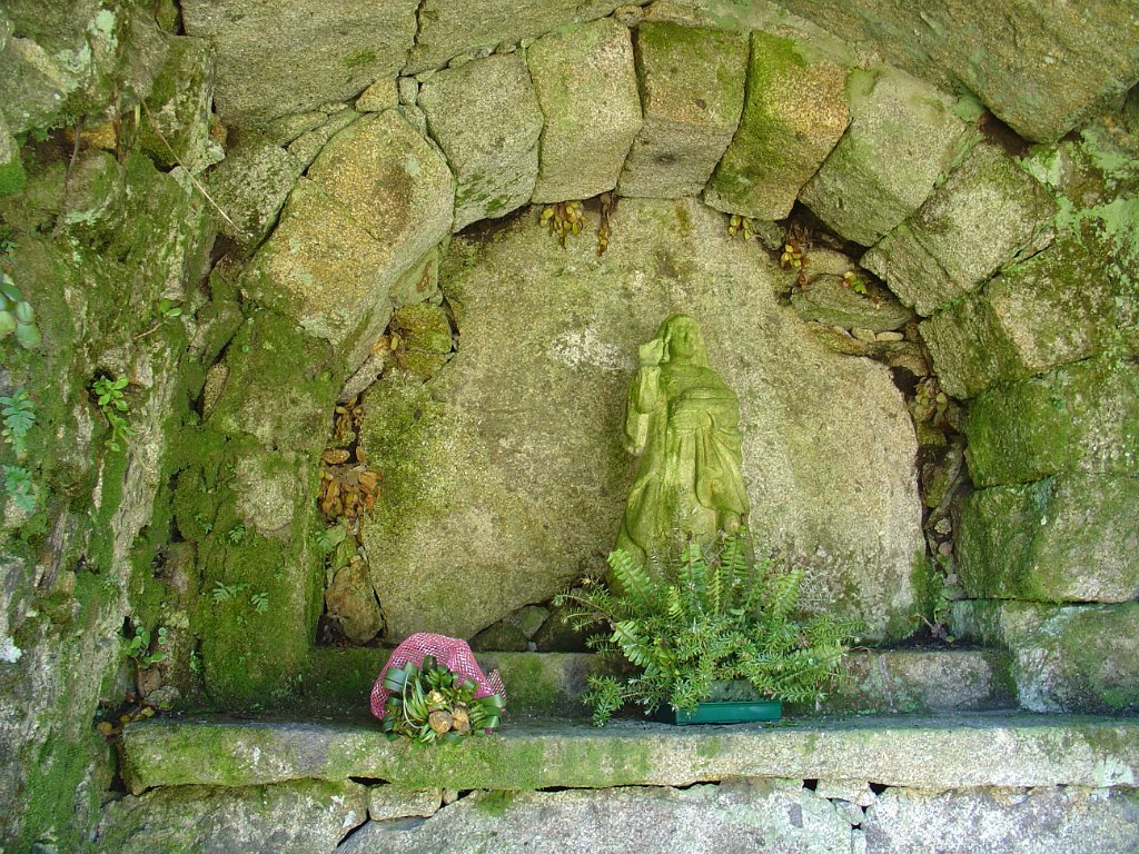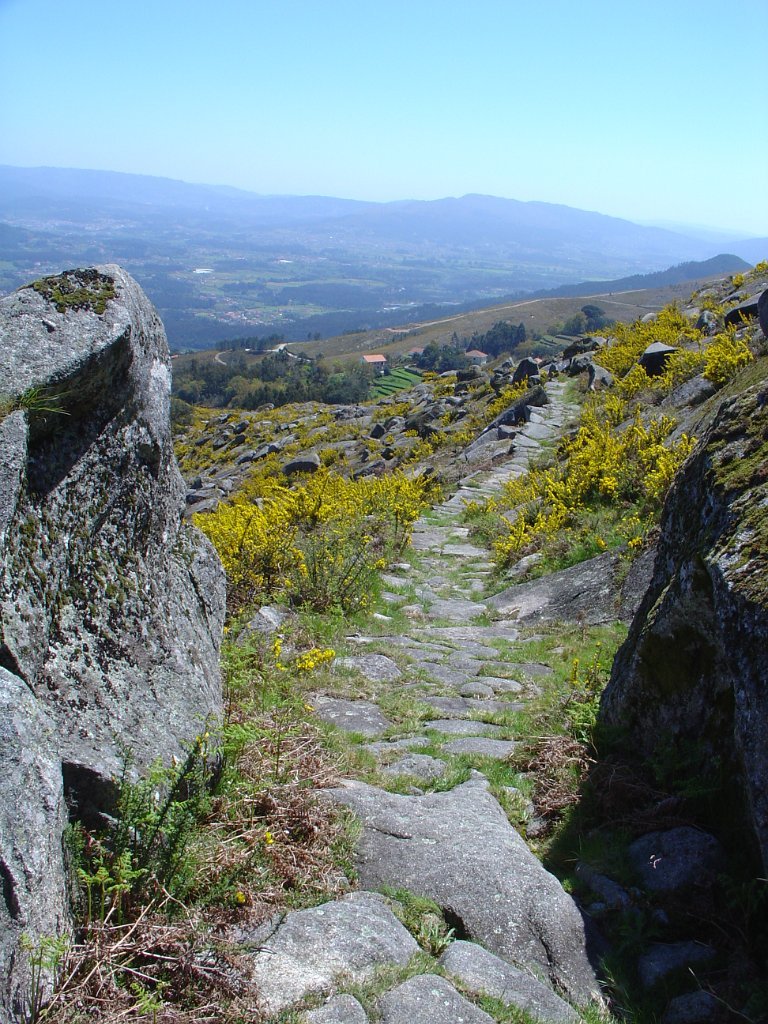 No início, mal se distingue de um trilho vulgar pedregoso, mas um pouco depois revela-se em plenitude uma extraordinária calçada, que sobe abruptamente por entre as enormes rochas, serpenteando sempre até atingir quase diretamente a gruta da Srª do Minho, nas traseiras do templo da santa, que é única, pois enverga o tradicional traje regional do Alto Minho.