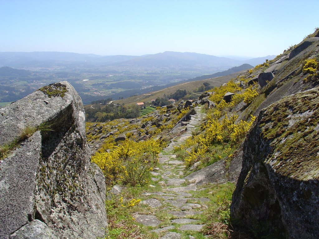 Voltamos ligeiramente atrás e tomamos a calçada que sobe direta à Sª do Minho, no alto do Bretial.