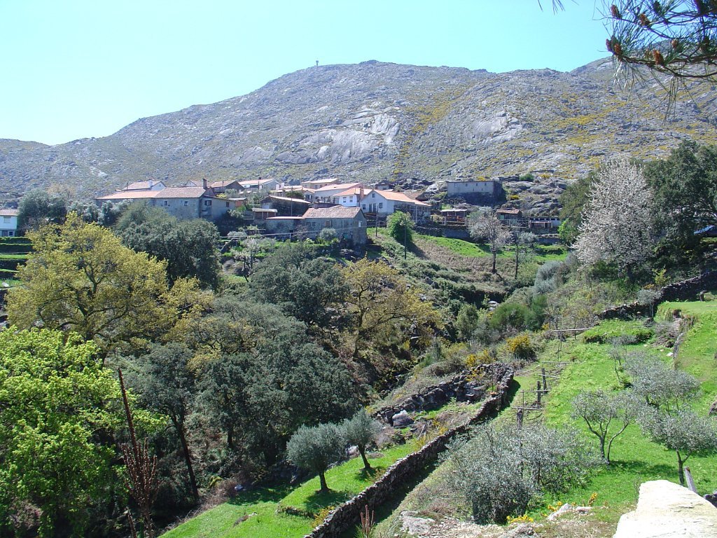 Mas poucos metros depois, mesmo antes de chegar à Porta do Lobo, deixamos essa calçada e iniciamos a descida pela calçada do Cerquido, que nos leva diretamente à povoação.
