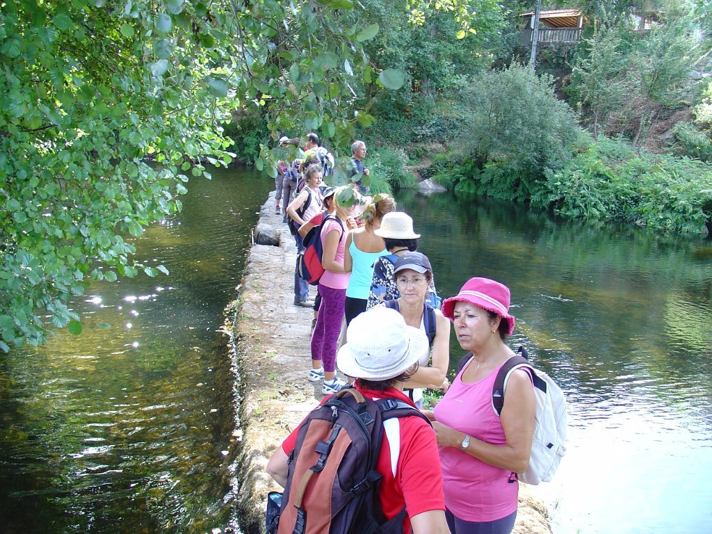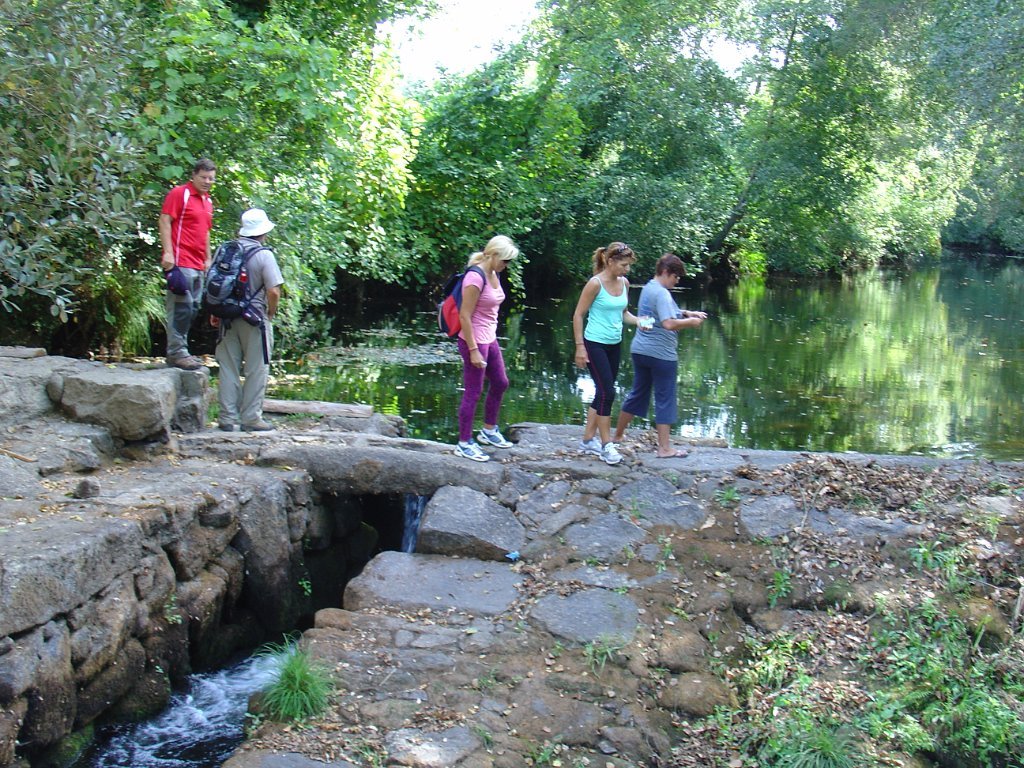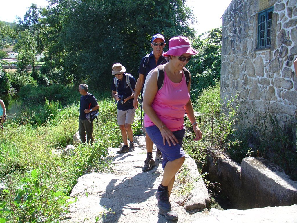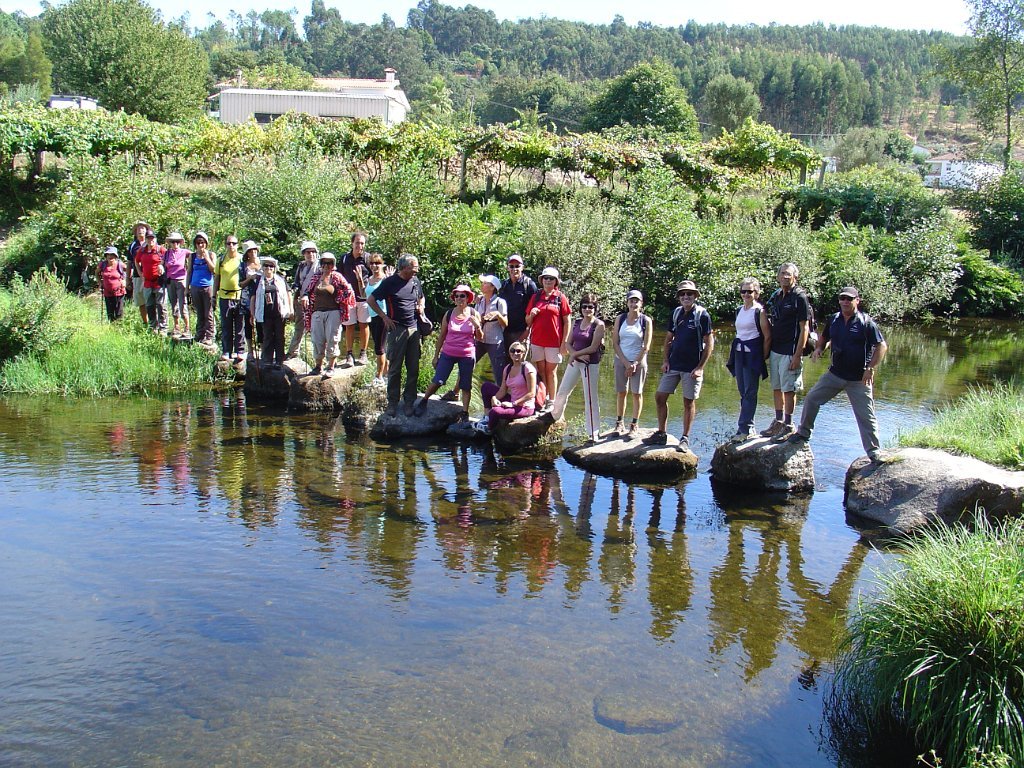 A conversa foi muita e a vontade de encarar o sol abrasador pouca, pelo que foi muito a custo que transpusemos a ponte e seguimos para a azenha seguinte, que foi a das Passadoiras, onde aproveitamos as poldras sobre o Neiva, para a costumeira foto de grupo.