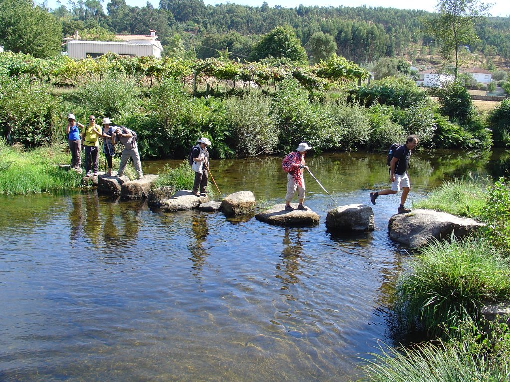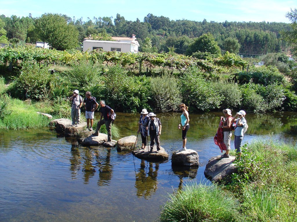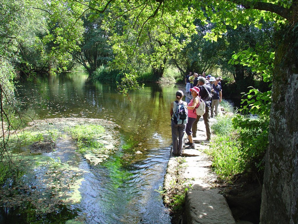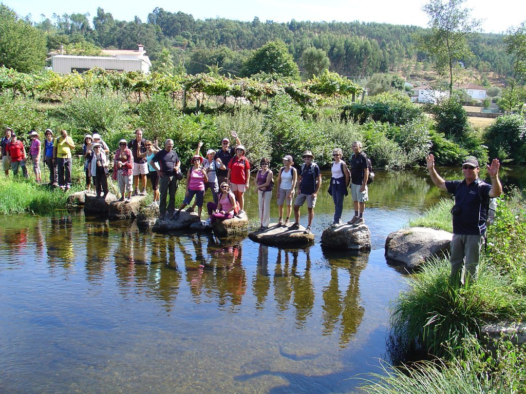 A conversa foi muita e a vontade de encarar o sol abrasador pouca, pelo que foi muito a custo que transpusemos a ponte e seguimos para a azenha seguinte, que foi a das Passadoiras, onde aproveitamos as poldras sobre o Neiva, para a costumeira foto de grupo.