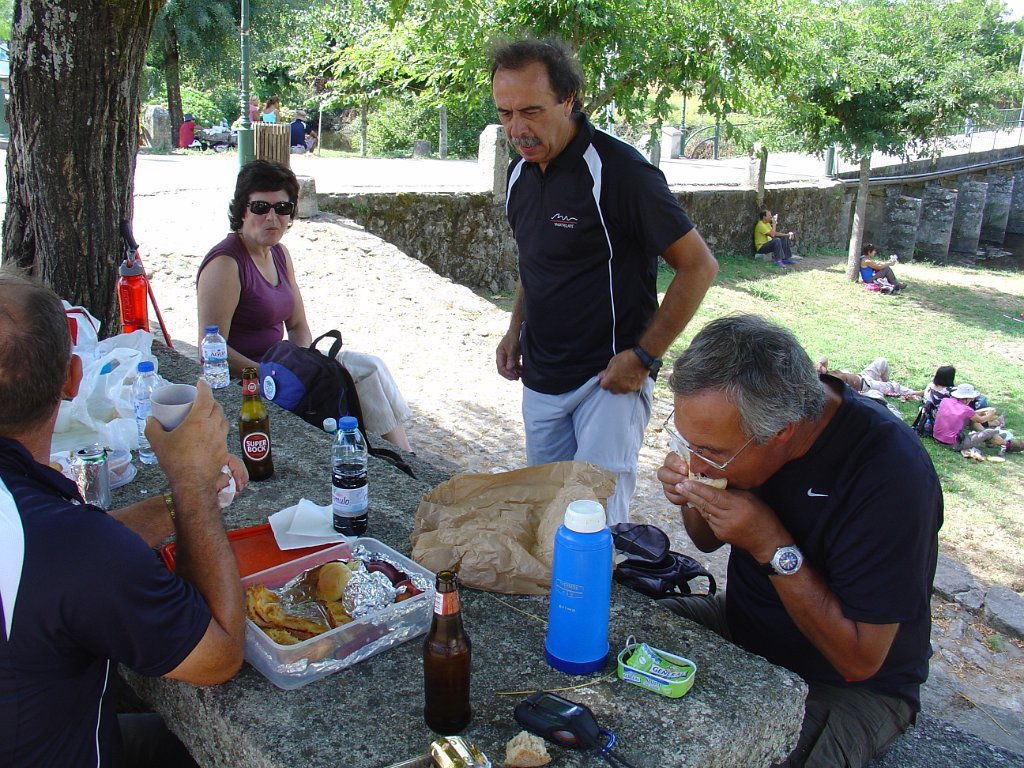 O almoço foi no parque de merendas da Ponte de Tregosa, cujas frondosas copas das árvores, nos pouparam à inclemência do sol, que teimava em nos tisnar as peles.