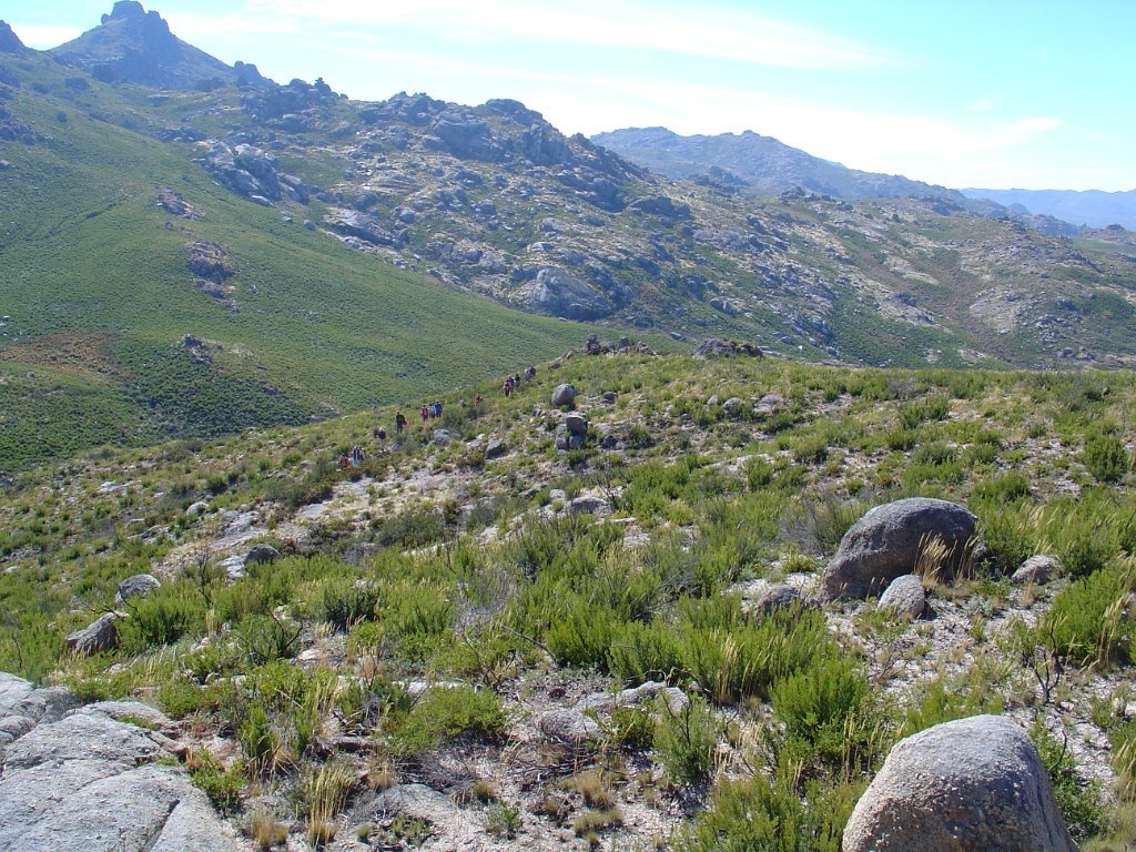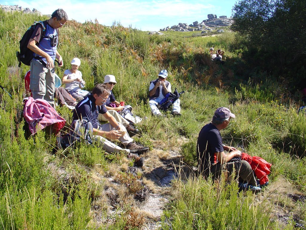 Mas, valha-nos os telemóveis, já que os rádios ficaram no mesmo lado! Com uns telefonemas a coisa resolveu-se e o grupo reuniu-se mais à frente, junto ao “Monte de Rechao”, tendo a pausa para almoço ocorrido numa sombra junto dos “Penedos de Moromba”.