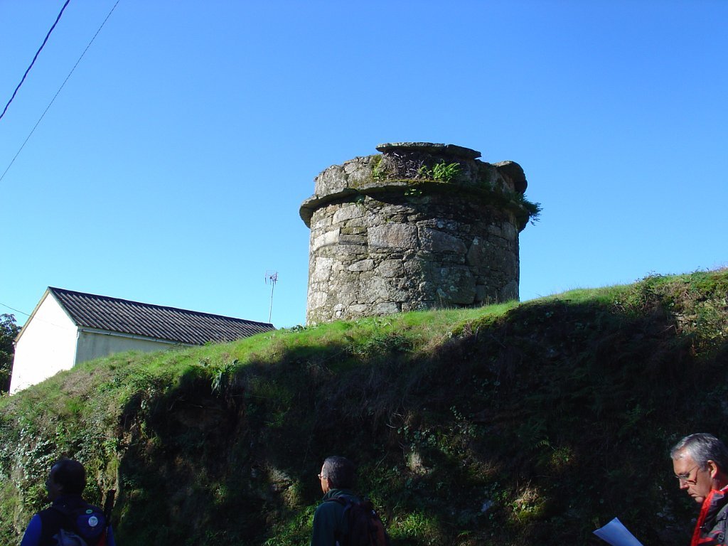 Seguimos hacia el torreiro que está al lado de la iglesia parroquial, y una vez atravesado tenemos que coger un camino que arranca al fondo, un viejo camino, ahora con las losas a la vista. Estamos en una rica zona monumental aunque en total abandono. Al llegar al final, entronca perpendicularmente con otro que discurre por la parte alta del pueblo. Si lo seguimos a la derecha, podemos ver un antiguo "lagar da cera" y un rudimentario crucero bajo un baldaquino. De regreso al alcanzar el cruce, seguimos de frente y a nuestra derecha podemos ver una hermosa casa de campo con buena arquitectura con palomar y hórreo. Seguimos de frente y casi al final del pueblo seguimos un estrecho camino que nos lleva de nuevo a la N-120 en un cruce con fuente, pilón y un panel informativo.