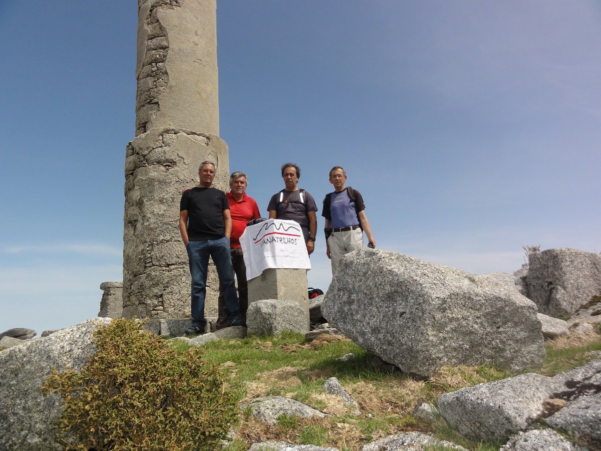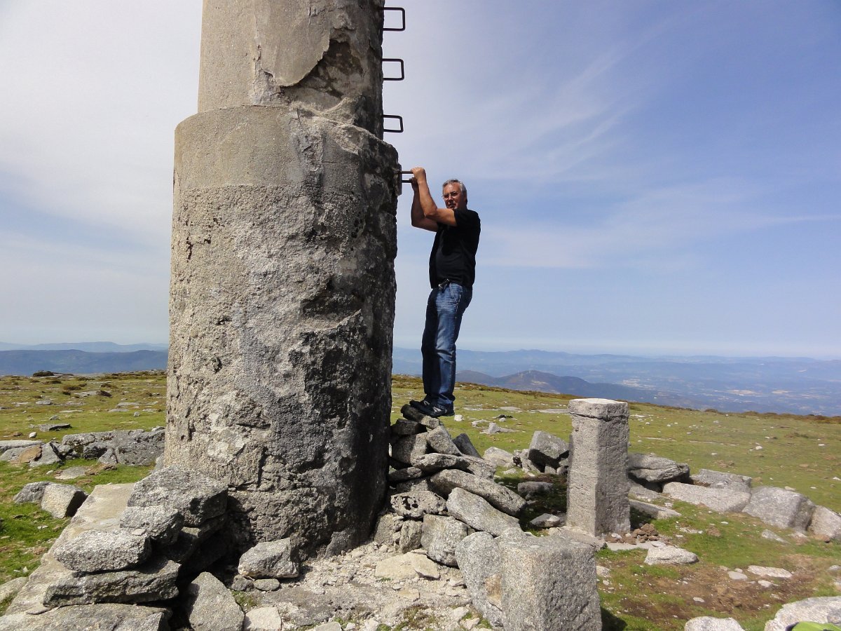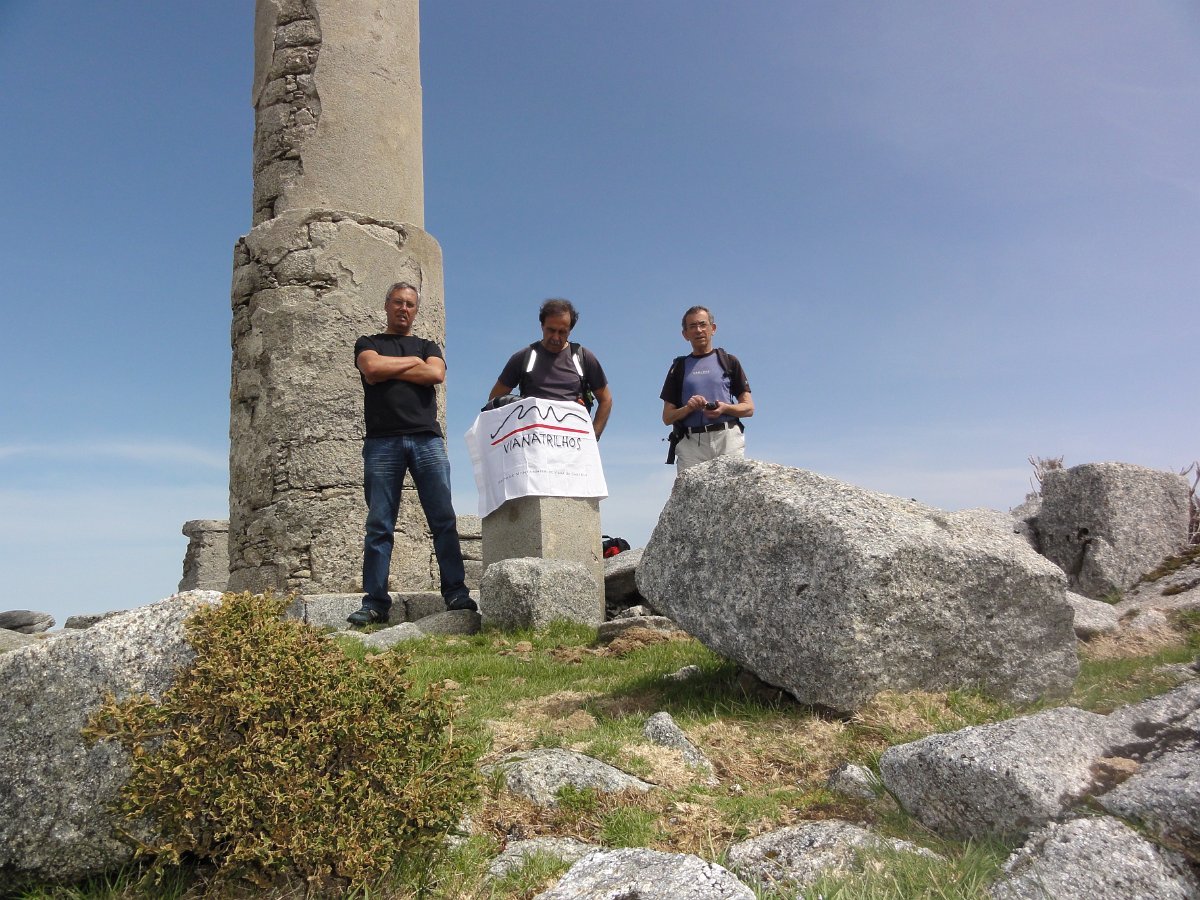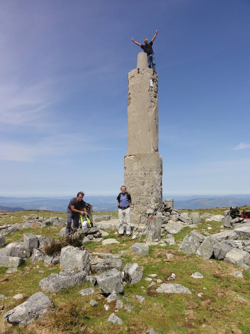 Trepamos o que restava para o Pedrinho, onde se tirou a foto da praxe, com a bandeira da Vianatrilhos com o Higino a fazer trapézio no marco geodésico de 1ª categoria, tendo depois seguido para a borda ocidental do planalto para apreciar as vistas, que neste ponto são magníficas.