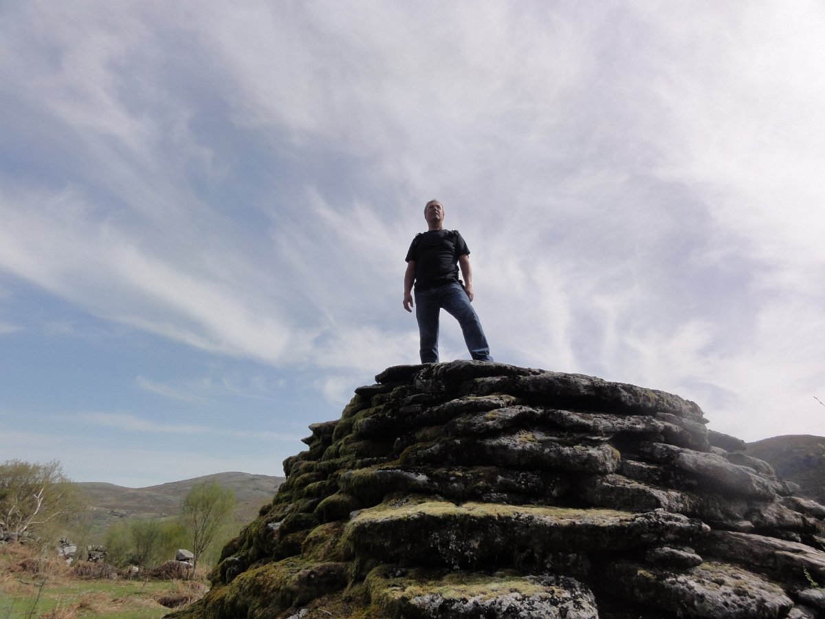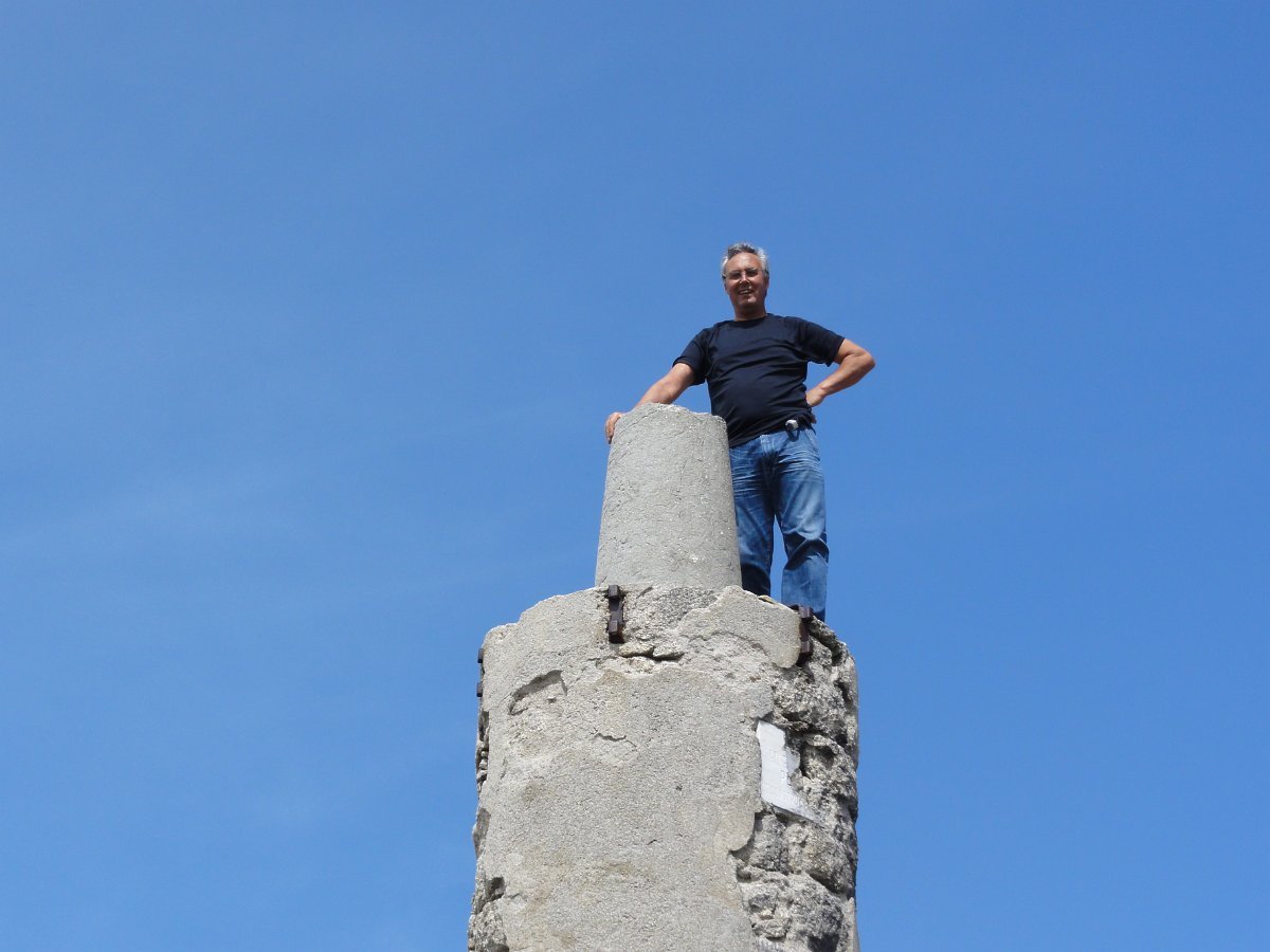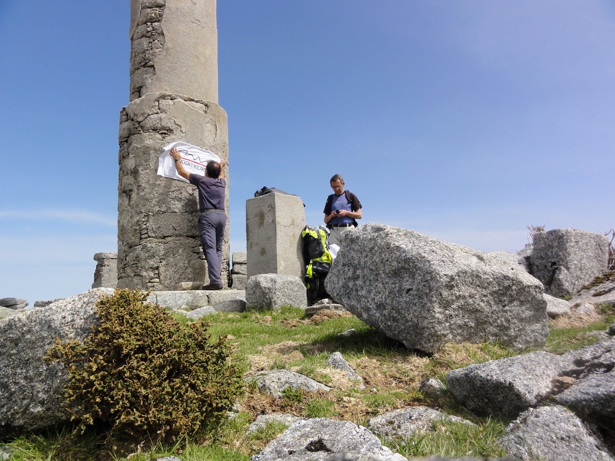 Trepamos o que restava para o Pedrinho, onde se tirou a foto da praxe, com a bandeira da Vianatrilhos com o Higino a fazer trapézio no marco geodésico de 1ª categoria, tendo depois seguido para a borda ocidental do planalto para apreciar as vistas, que neste ponto são magníficas.