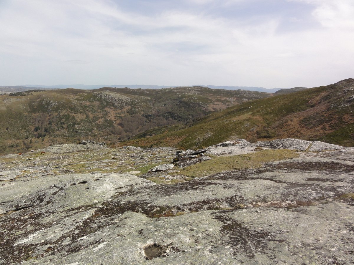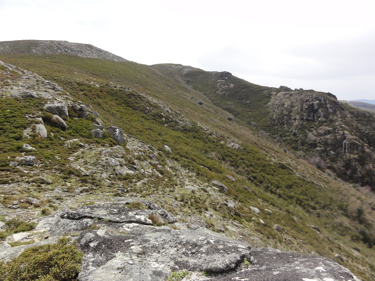 Não descemos ao estradão que vem do Couço e antes de começar a subida para o Pedrinho, fomos à borda do planalto espreitar para a Chã da Cruz, com a apertada Corga dos Cortelhos à nossa frente.