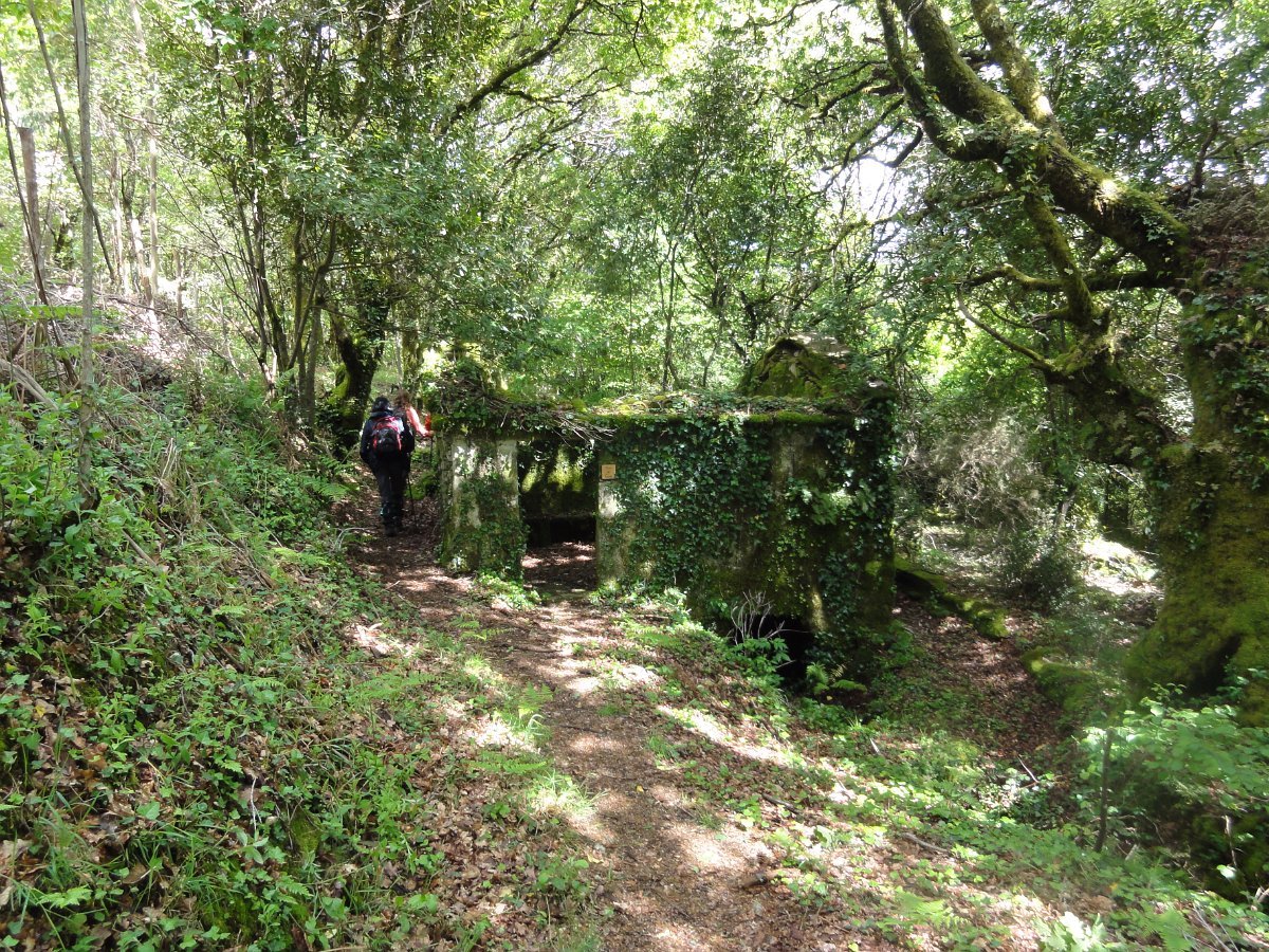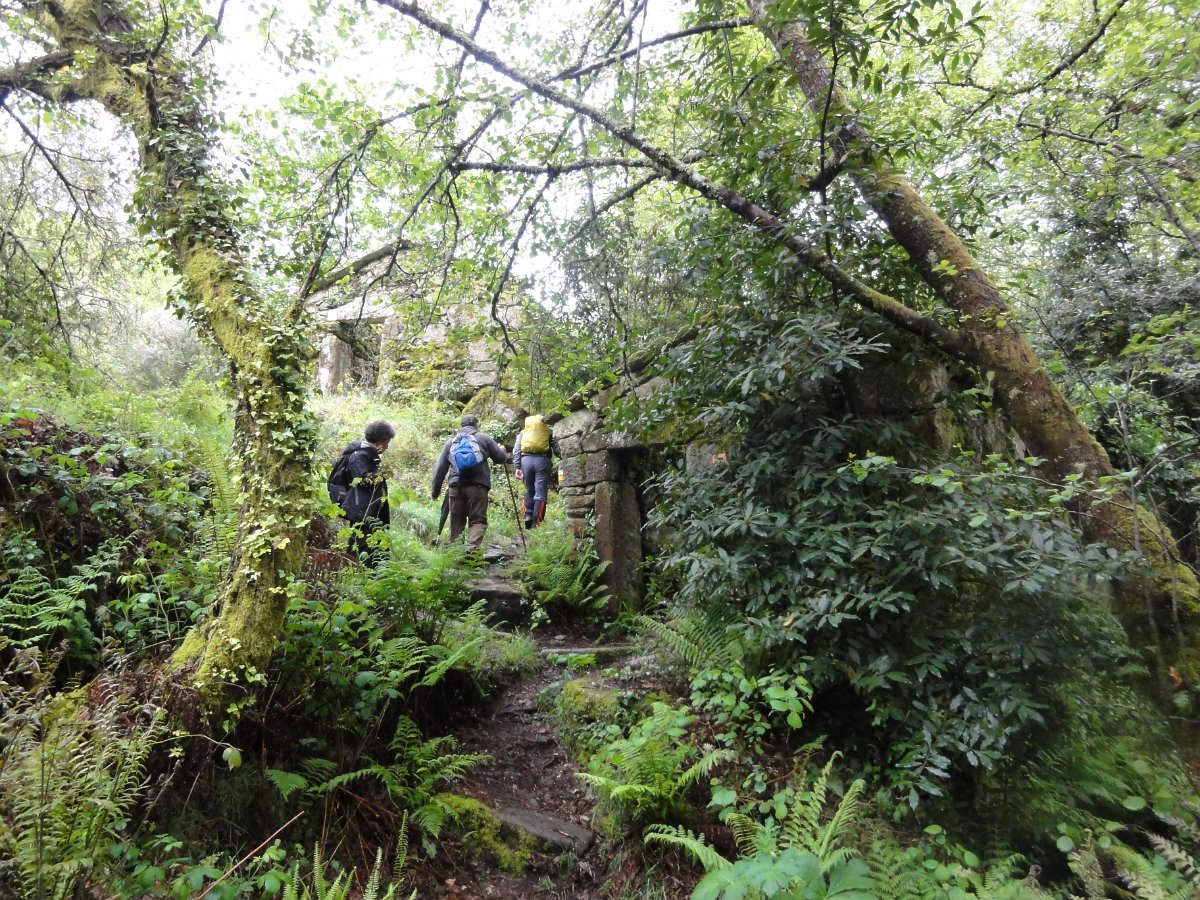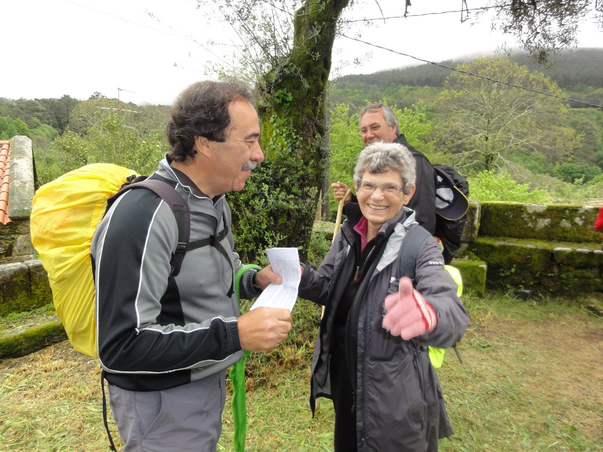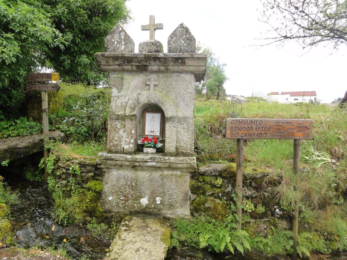 Depois de cruzar a Ponte de Folón, iniciamos a subida do Camiño Real, que nos levou ao lugar de Prado de Canda, fazendo o reagrupamento dos caminheiros junto às alminhas dedicadas a Stª do Rosário.