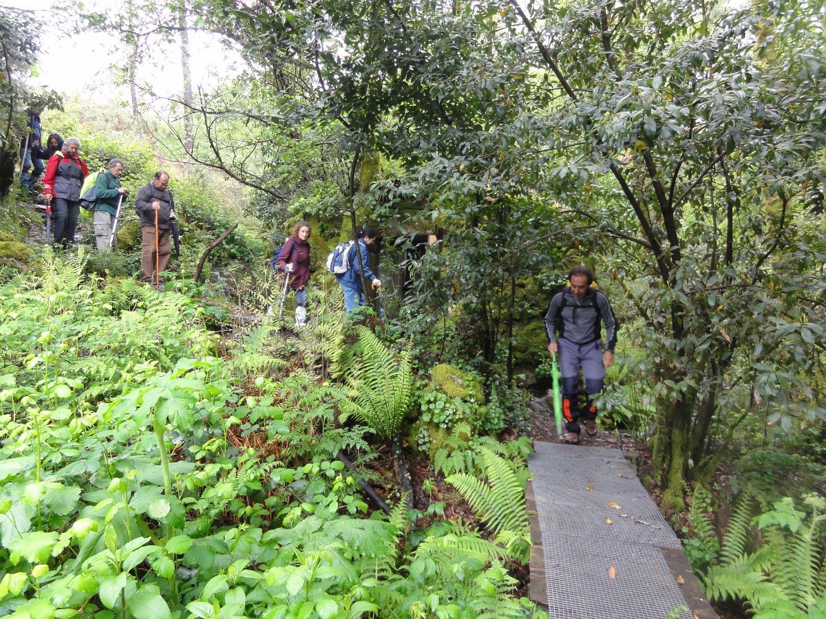 Seguiu-se a descida pela margem direita, mesmo defronte do trilho que seguimos de manhã, o que nos voltou a proporcionar a contemplação da sua espetacular flora, agora ainda mais nítida pelo sol que penetrava na densa vegetação, fazendo sobressair ainda mais os verdes dos musgos e líquenes, até níveis verdadeiramente cintilantes.