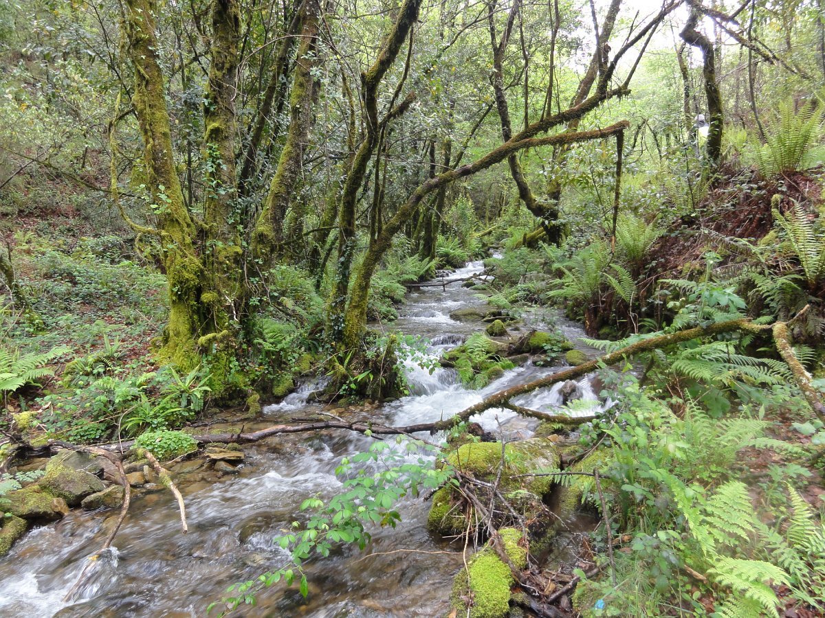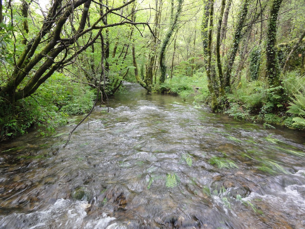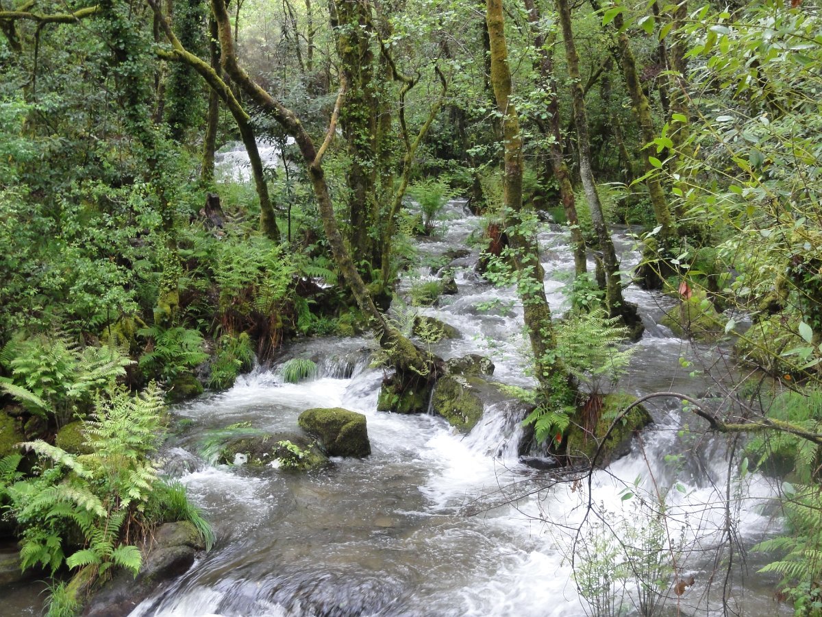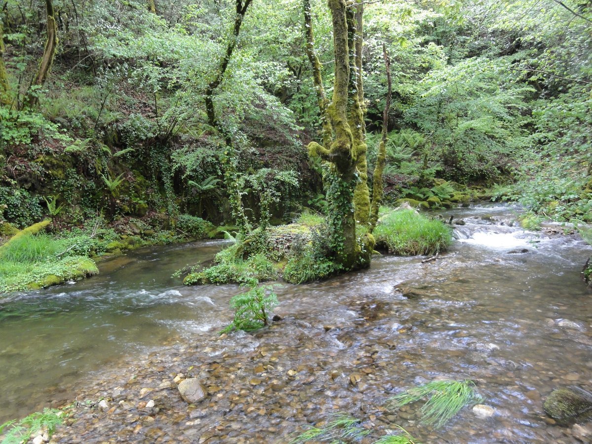 Saídos de Paraños descemos ao rio, junto da Ponte de A Lagoa e iniciamos a subida do rio Xabriña pela sua margem esquerda, observando tanto o gracioso curso de água, com pequenos rápidos e belas cascatas, como a luxuriante vegetação, como os diversos moinhos e fontes, quase completamente cobertos de musgos e líquenes, meio escondidos na frondosa vegetação.