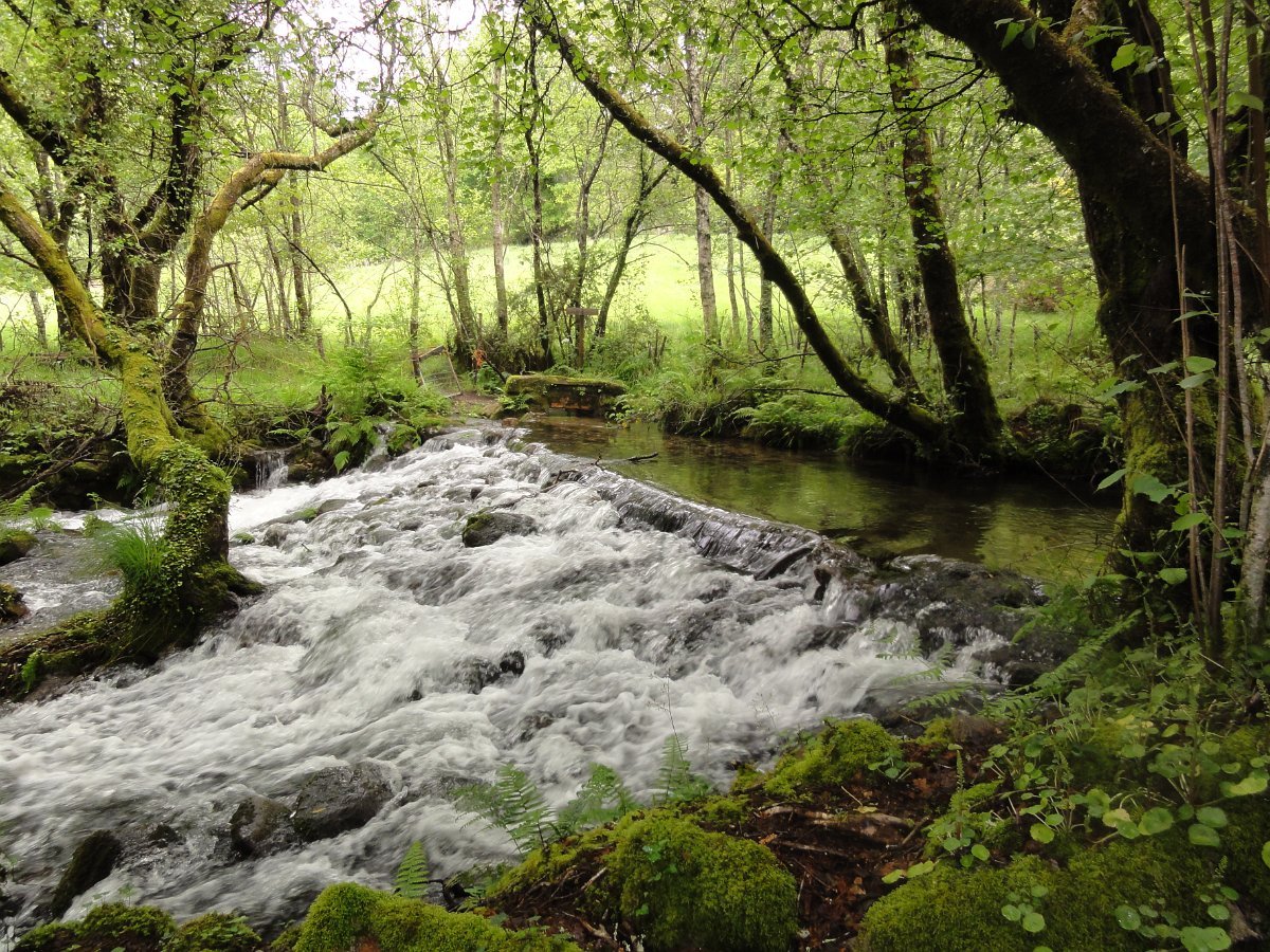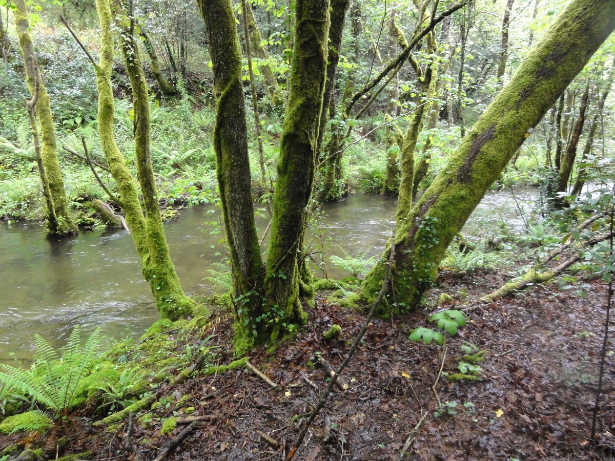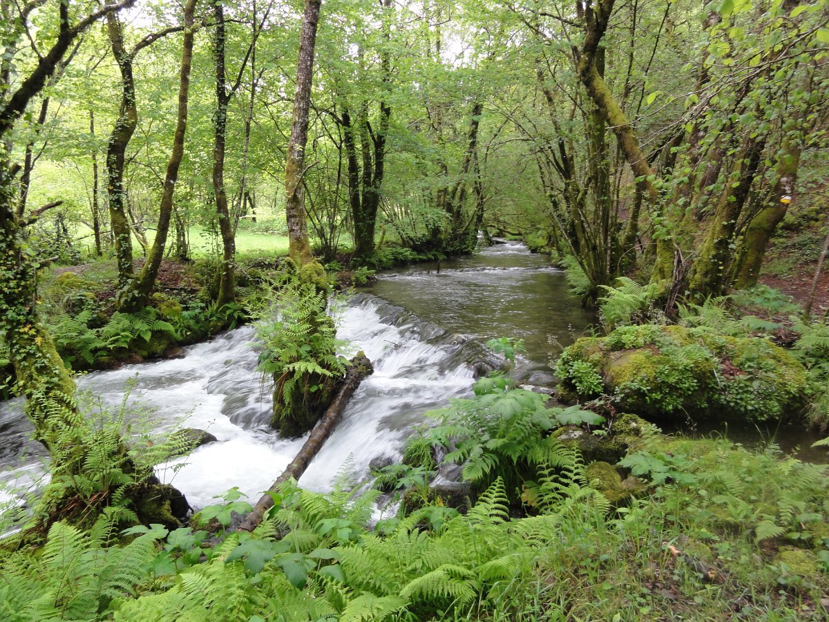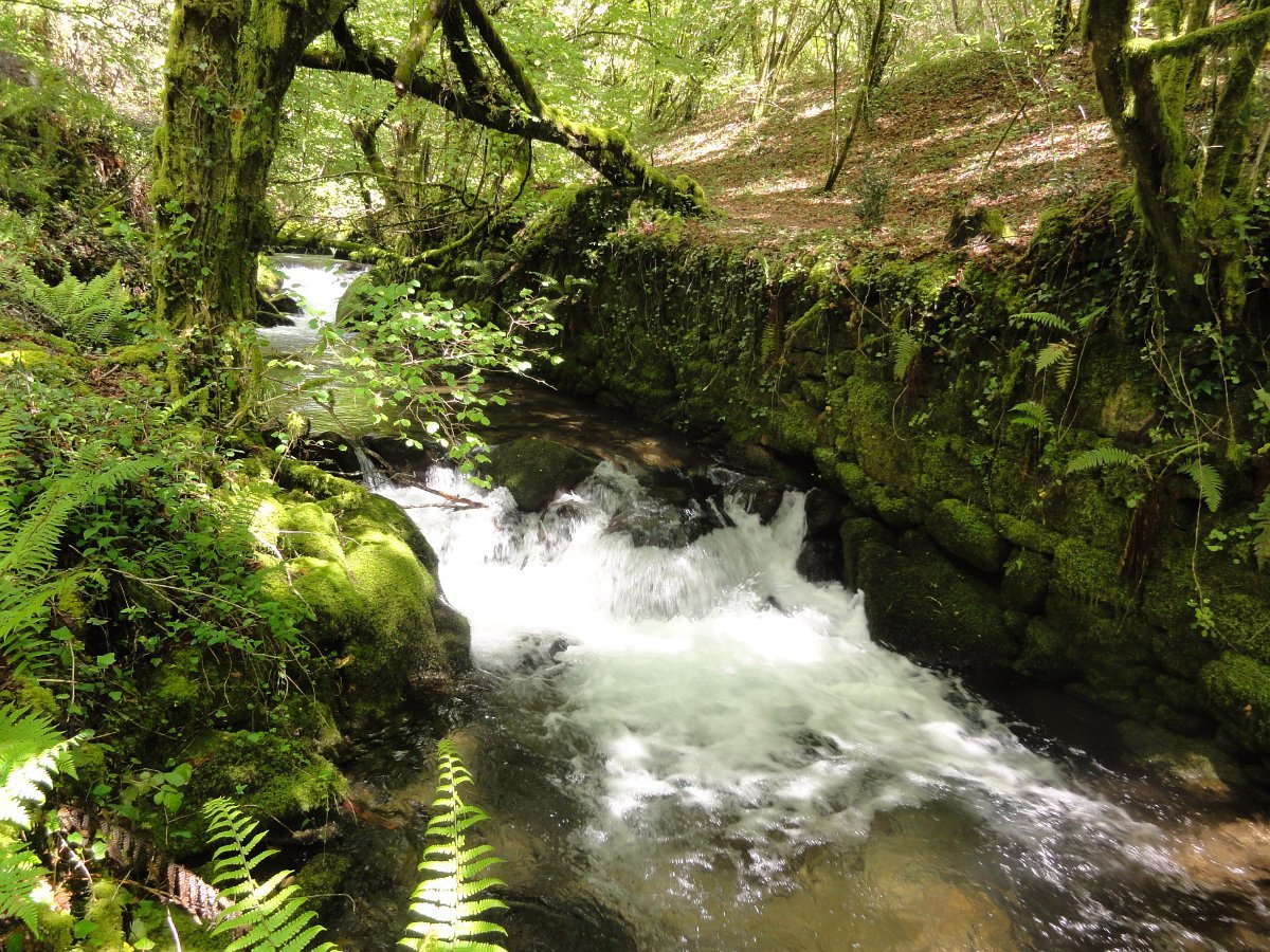 Saídos de Paraños descemos ao rio, junto da Ponte de A Lagoa e iniciamos a subida do rio Xabriña pela sua margem esquerda, observando tanto o gracioso curso de água, com pequenos rápidos e belas cascatas, como a luxuriante vegetação, como os diversos moinhos e fontes, quase completamente cobertos de musgos e líquenes, meio escondidos na frondosa vegetação.