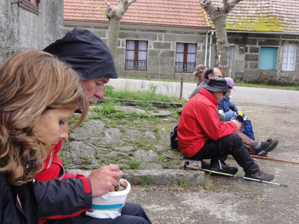 E foi junto à “Iglesia de San Bartolomé de A Lamosa” que fizemos a merecida e já tardia refeição, recompondo as forças e aproveitado o solheiro para nos aquecer o corpo.