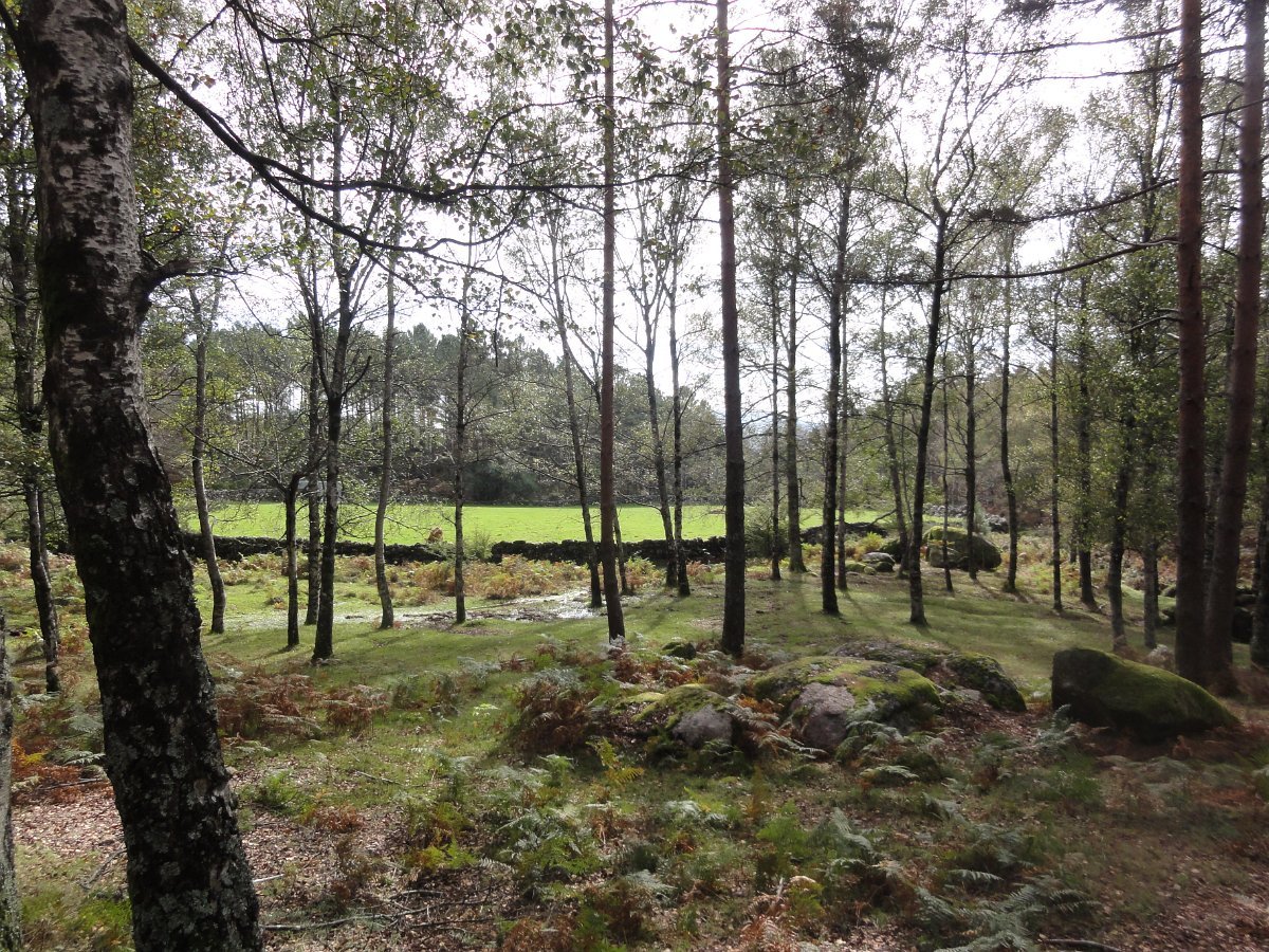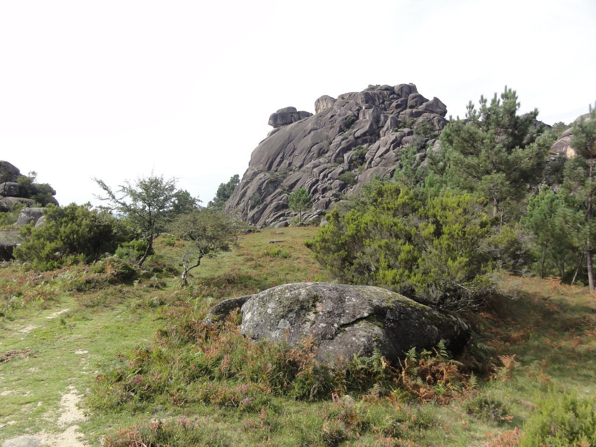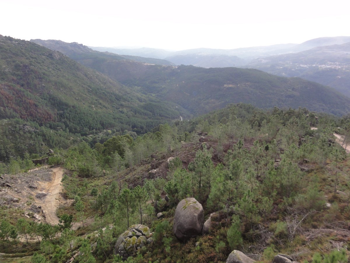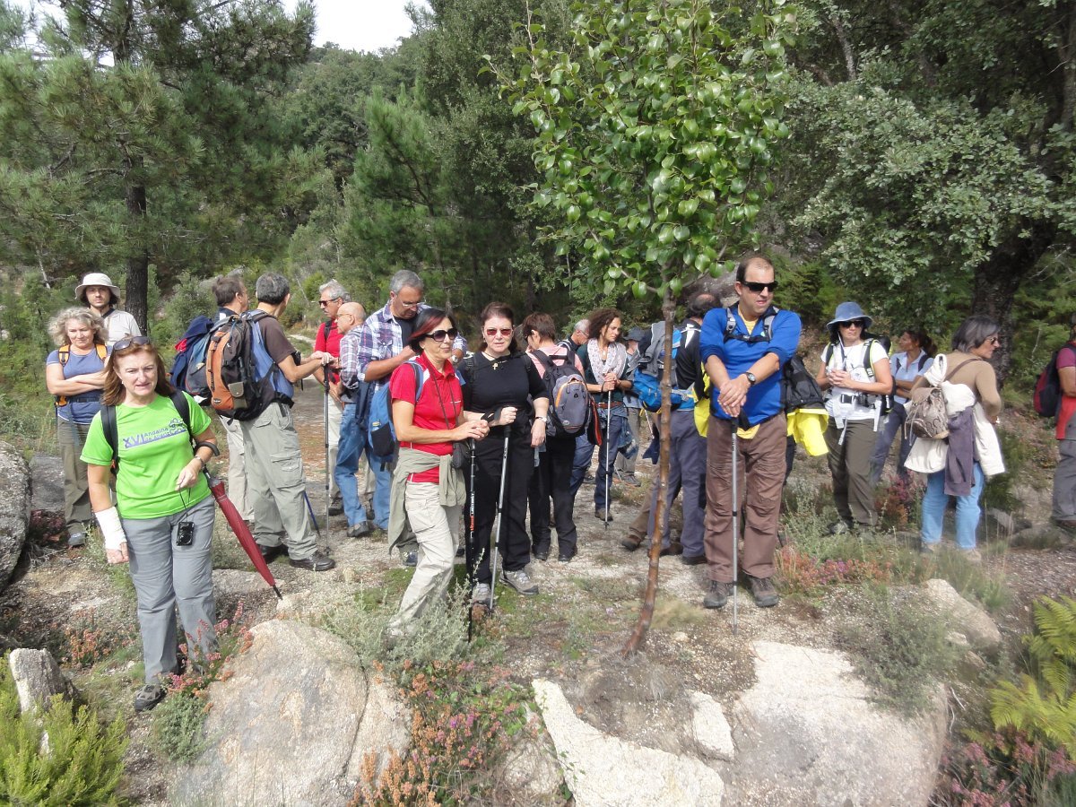 Iniciamos de seguida a descida de uma encosta virada a sul, protegida dos ventos dominantes, que deu o nome a esta caminhada - o Sobreiral da Ermida, em que os seculares sobreiros se combinam harmoniosamente com medronheiros, coloridos com vermelhos frutos, vidoeiros e alguns castanheiros, também carregados de verdes ouriços, quase maduros nesta época do ano.