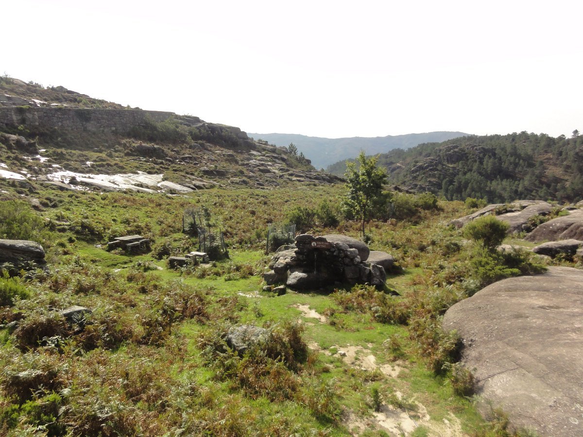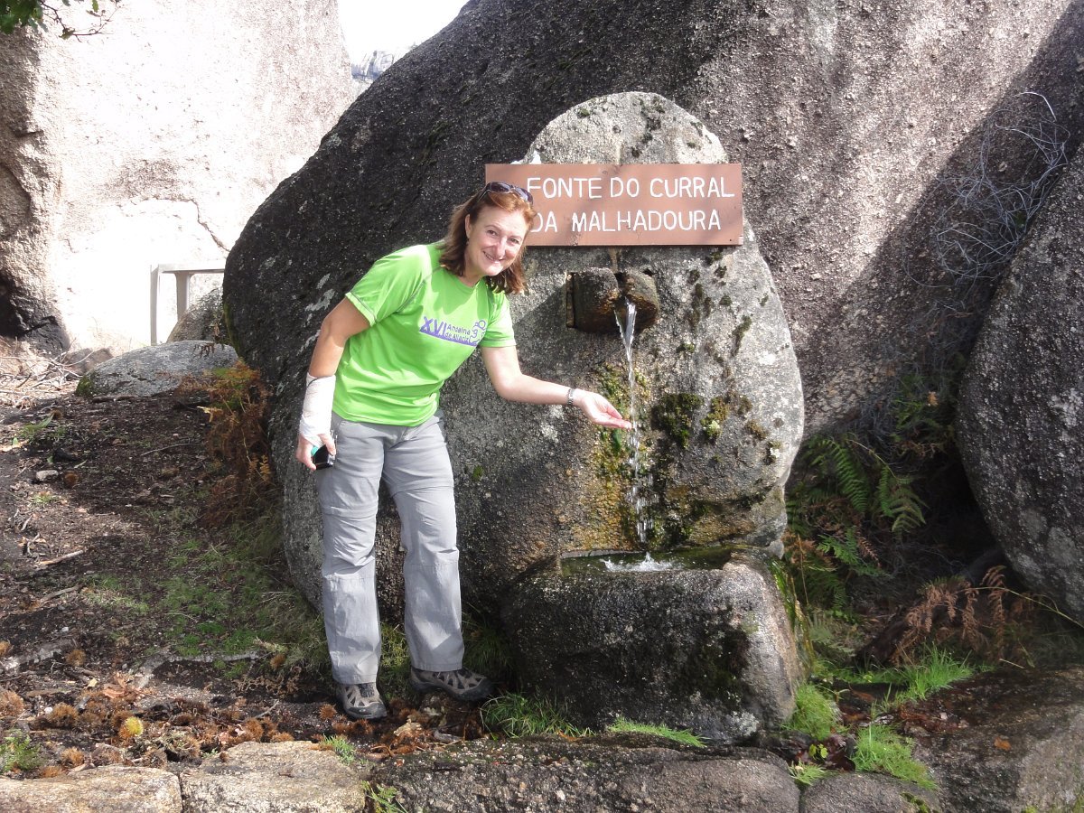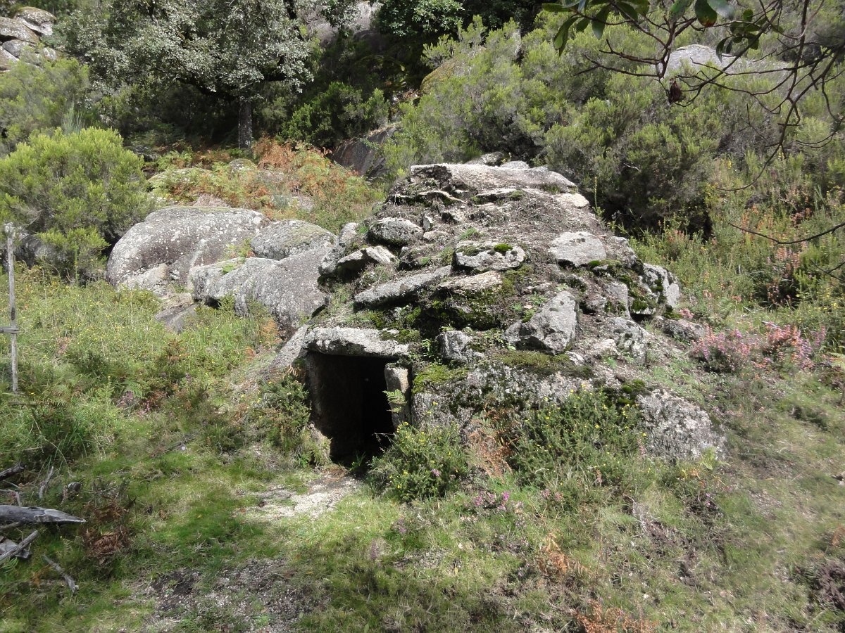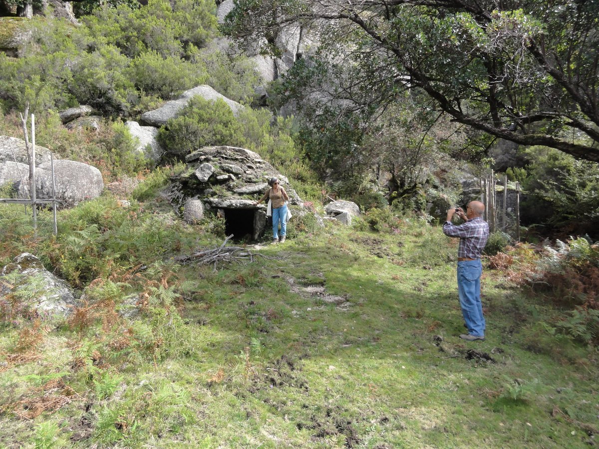 Depois de uma breve pausa, recomeçamos a subida até ao Curral da Malhadoura, com o seu abrigo encravado nas chochas e fonte de água cristalina que brota debaixo de enorme mole granítica, outrora usado para confinar o gado que pastava nestas paragens.