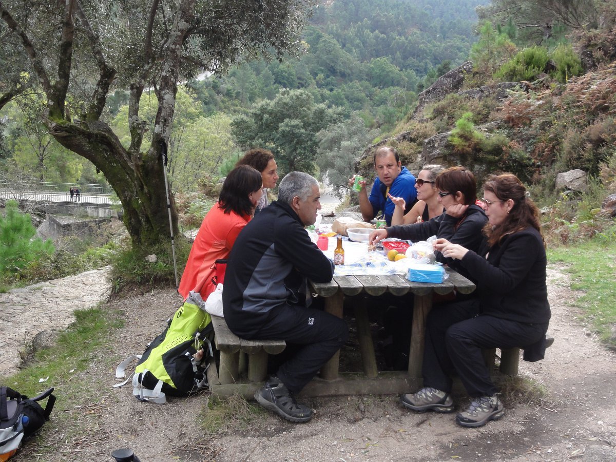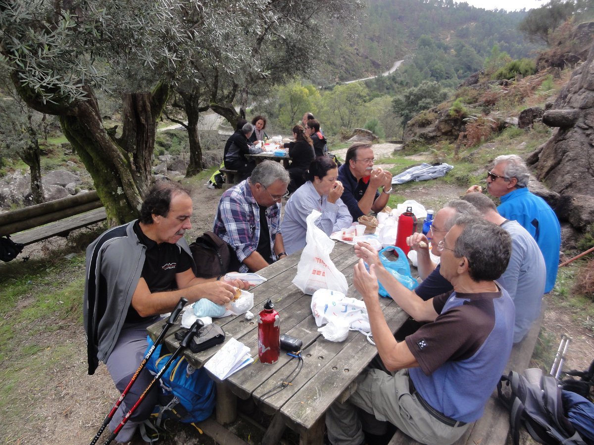 Mas havia que seguir e descemos até à Ponte da Pigarreira, onde aproveitamos um providencial grupo de mesas, para fazer a frugal pausa de almoço.