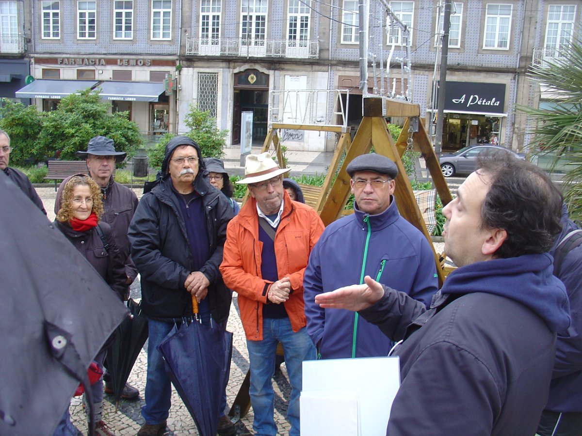 Que não tivessem vindo, ninguém poderá levar a mal, mas… não terem avisado… é que não nos parece lá muito curial. Mas como só faz falta quem aparece… lá seguimos, ainda debaixo de chuva fraca até à Praça Carlos Alberto, ponto de partida para a nossa atividade.