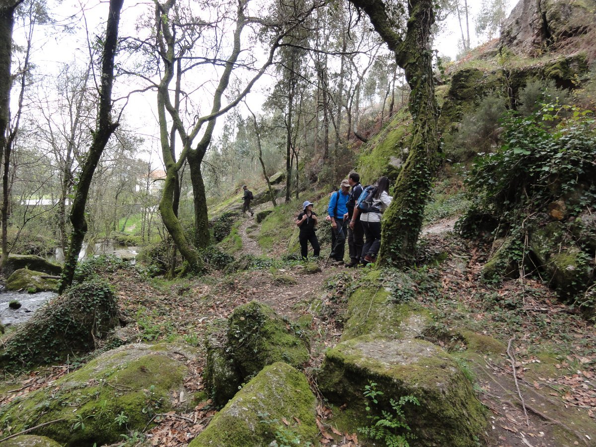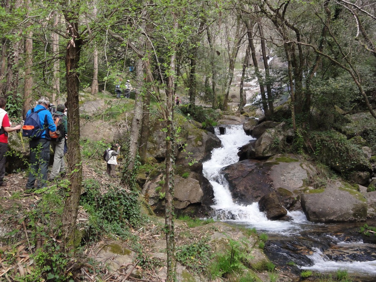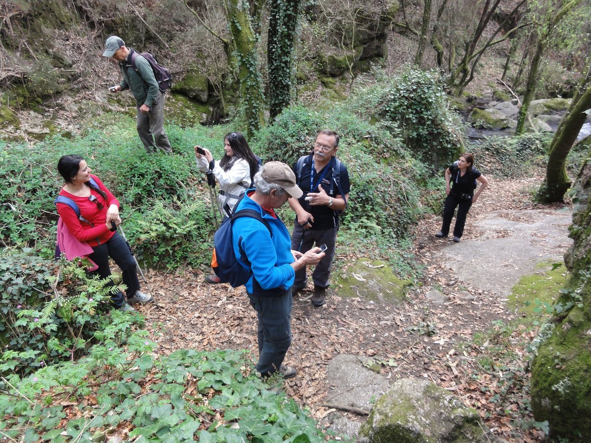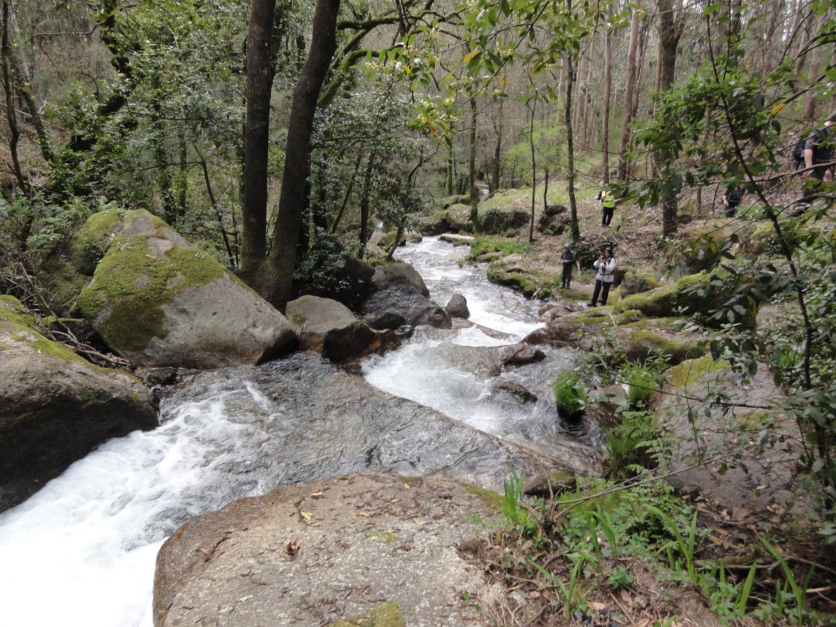 Chegados à ponte do Frião, começamos a subida das Quedas Fervença, subindo de patamar em patamar, apreciando o Leça a precipita-se ao longo de várias quedas de água criando um espetáculo natural de enorme beleza, por entre um bosque de carvalhos. Foi no patamar superior que fizemos uma pausa para apreciar a beleza do local e tirar a costumada foto de grupo.
