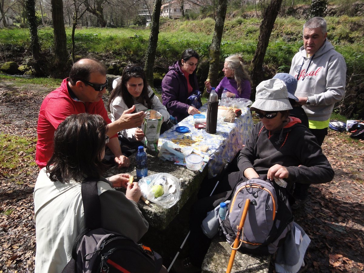 Antes fizemos uma breve paragem no Engenho da Azenha de Pereiros, onde existiu um engenho hidráulico pré-industrial de serração e depois fomos até ao parque de merendas contiguo, onde assentamos arraias para a “merenda”.