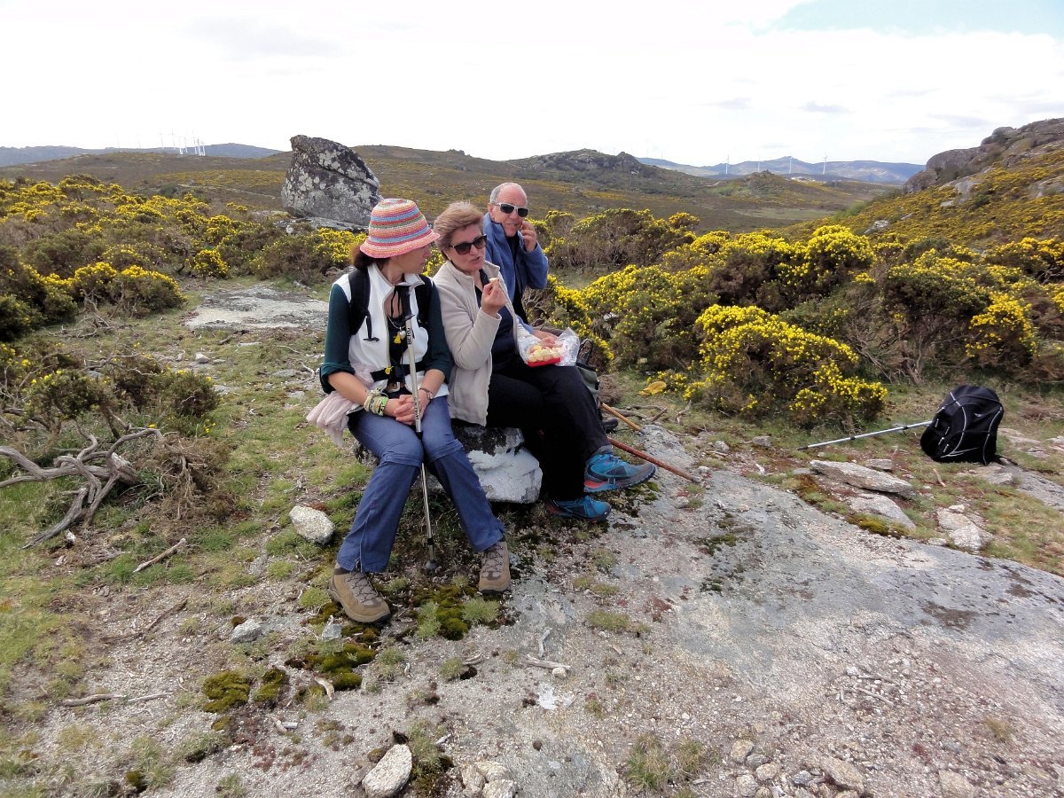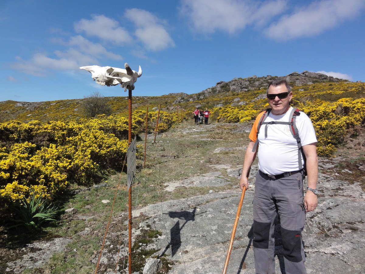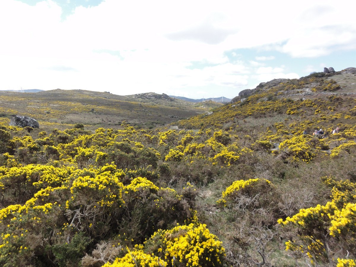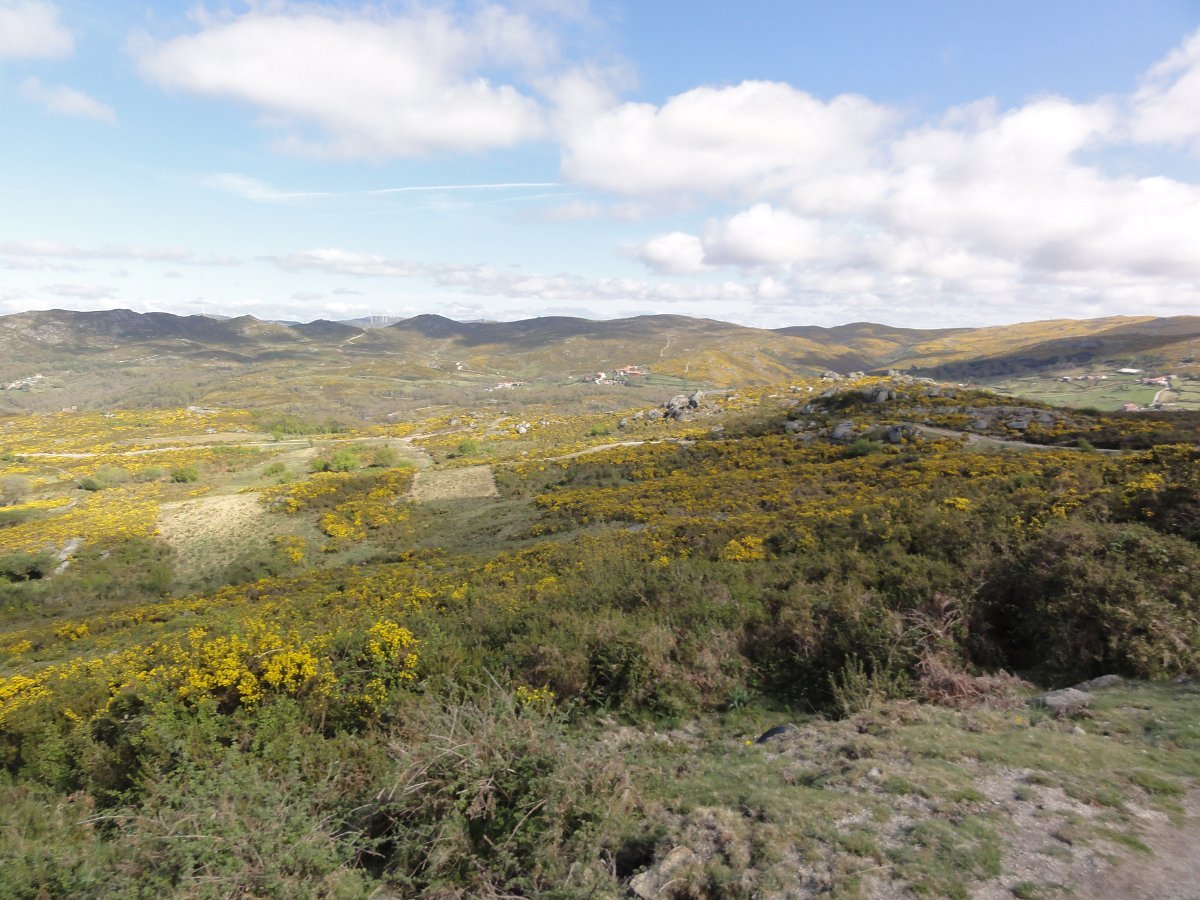 Do topo do penedo sobranceiro ao fojo, a paisagem é digna de se ver, com as muitas giestas a tingir de amarelo vivo toda a extensão ao redor, conferindo um tom ainda mais primaveril a esta bela manhã de Abril, com um sol raioso e uma temperatura ideal para esta nossa atividade.