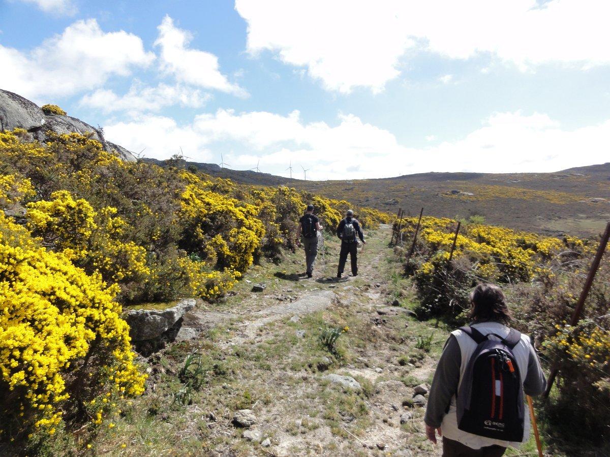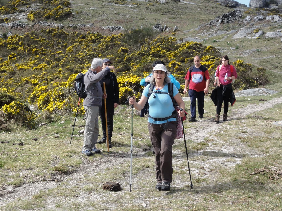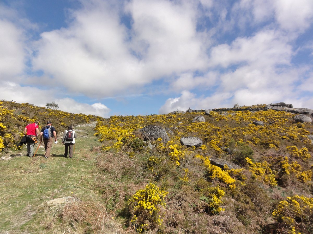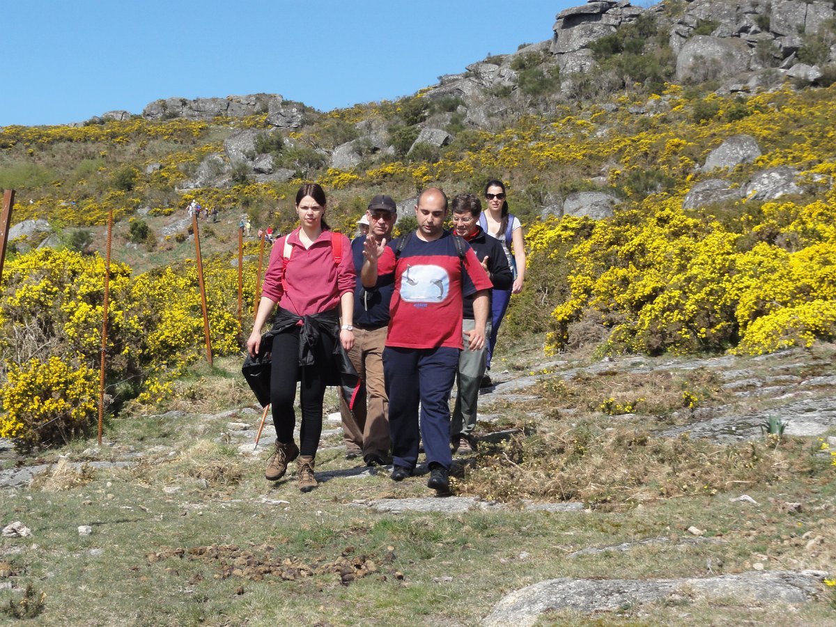 Do topo do penedo sobranceiro ao fojo, a paisagem é digna de se ver, com as muitas giestas a tingir de amarelo vivo toda a extensão ao redor, conferindo um tom ainda mais primaveril a esta bela manhã de Abril, com um sol raioso e uma temperatura ideal para esta nossa atividade.