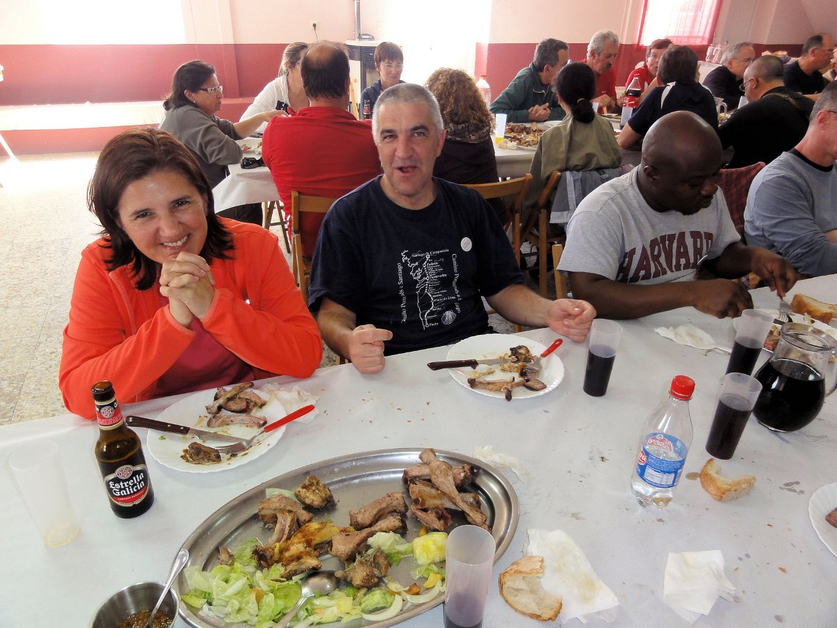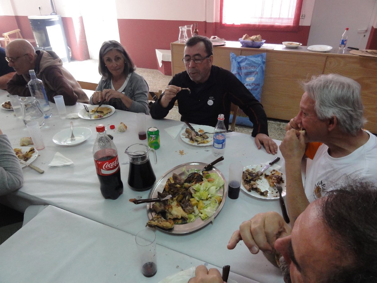 Acabado o percurso, havia que retemperar as forças. Os companheiros Mundo e Baqueiro tinham entretanto reservado o almoço em Aredo, na Casa do Pablo, onde nos esperavam umas entradas variadas típicas da região e um grelhado misto de carnes, que nos ajudou a recuperar as energias despendidas, servindo de pretexto para sã camaradagem.