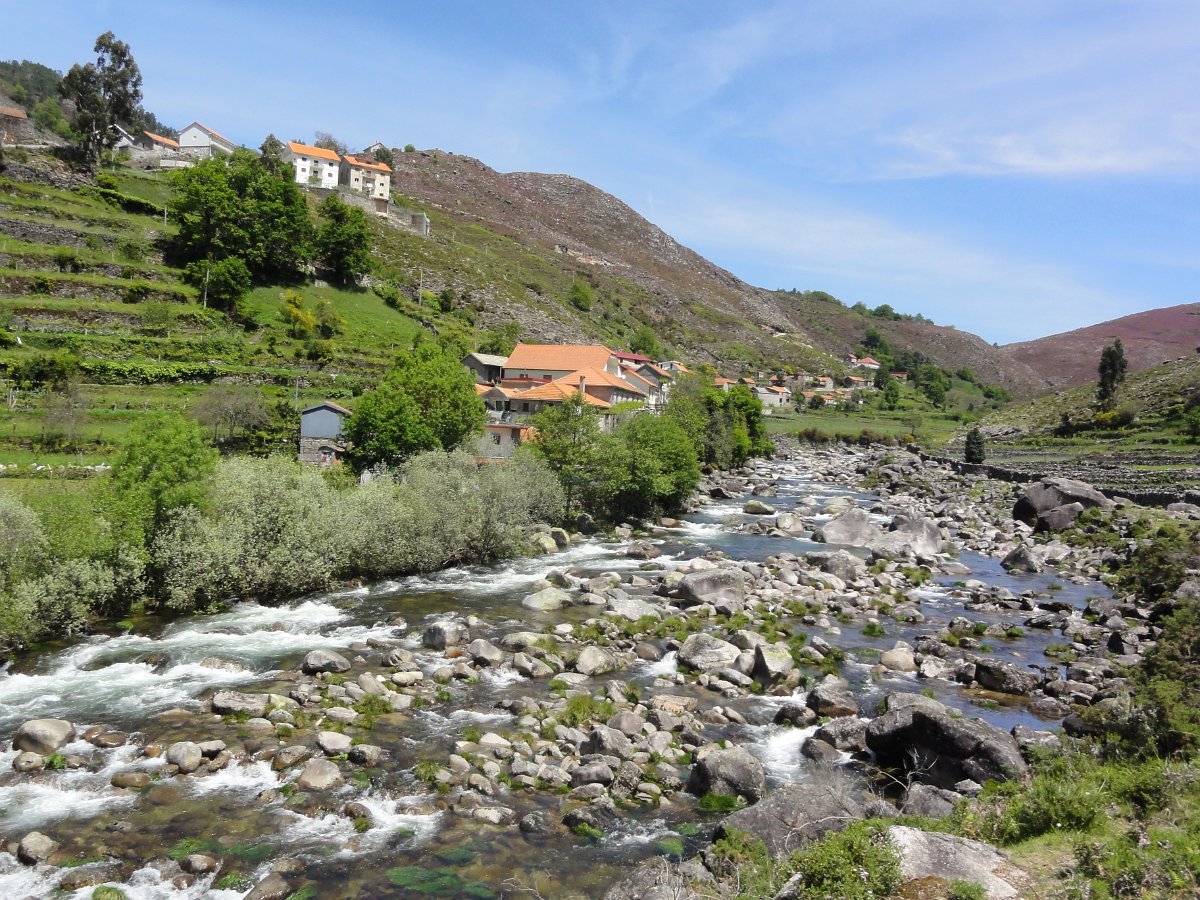 Chegamos à aldeia de Ribeiro de Baixo pelas 13:00 e subimos até ao largo da igreja, onde fizemos a pausa de almoço, aproveitando para desfrutar do enquadramento paisagístico dos lavradios em socalcos sobre ambas as margens do rio.