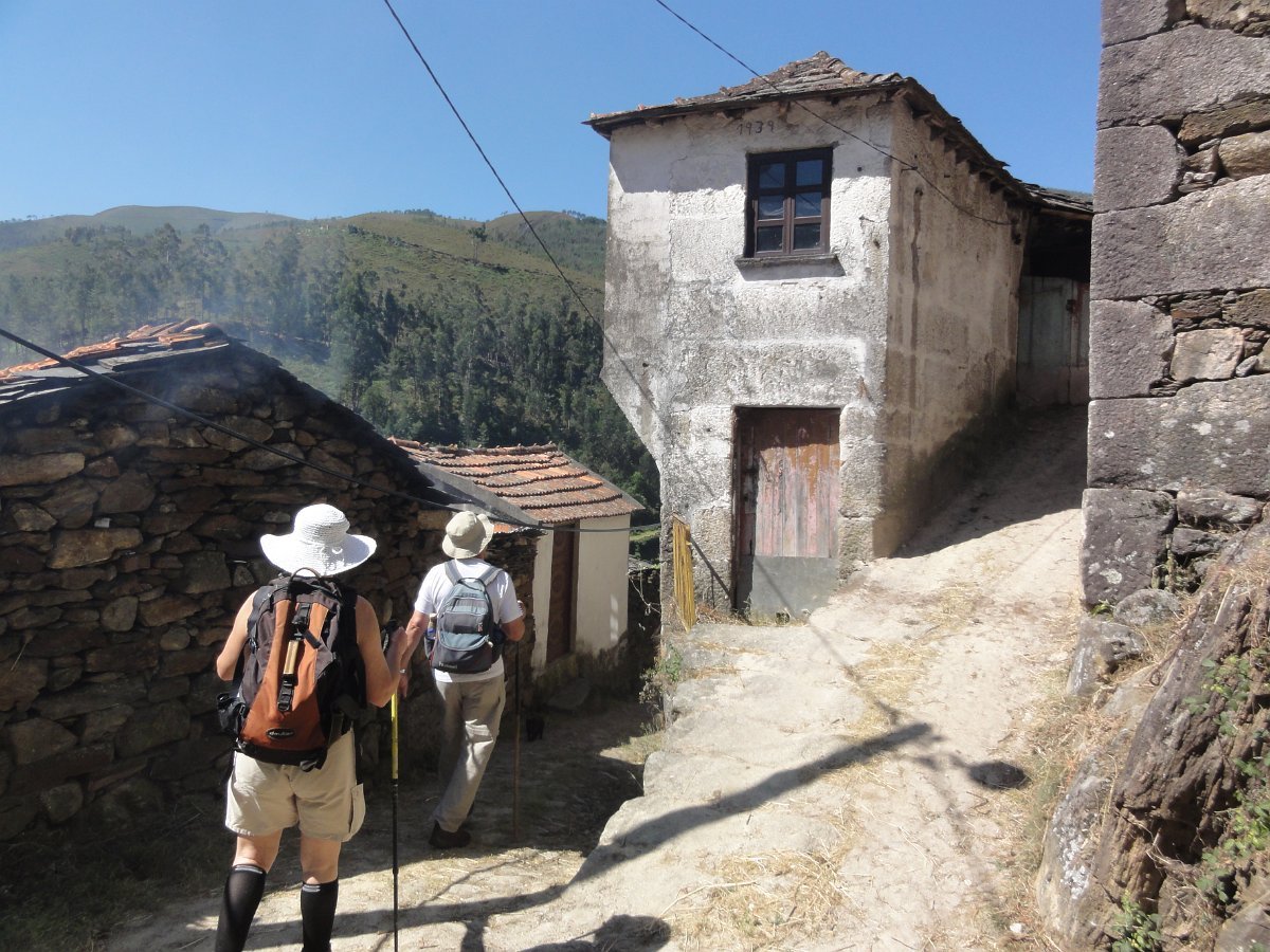 Mais para a frente a subida suavizou, a calçada melhorou, sempre debruçada sobre a ribeira, e começamos a divisar primeiro um conjunto abandonado de casebres e depois as casas de Regoufe, onde chegamos já pelas 13:00.