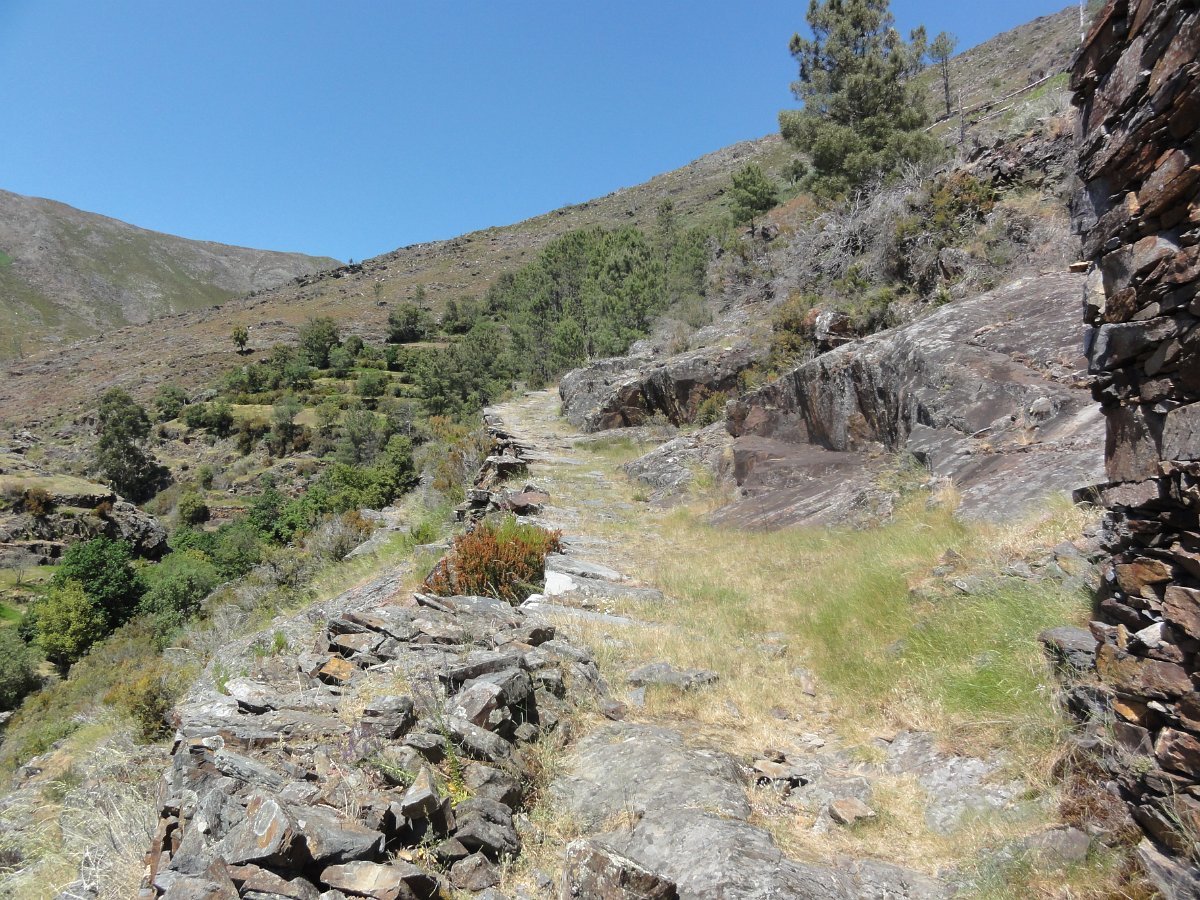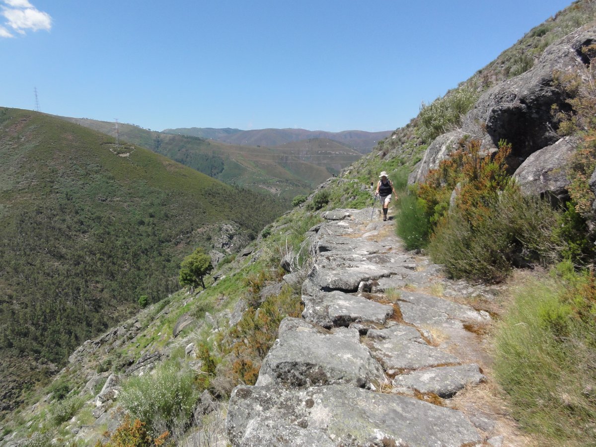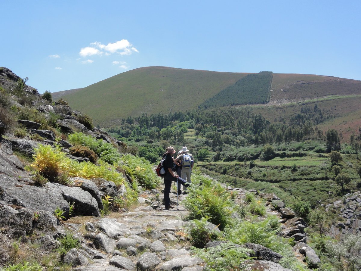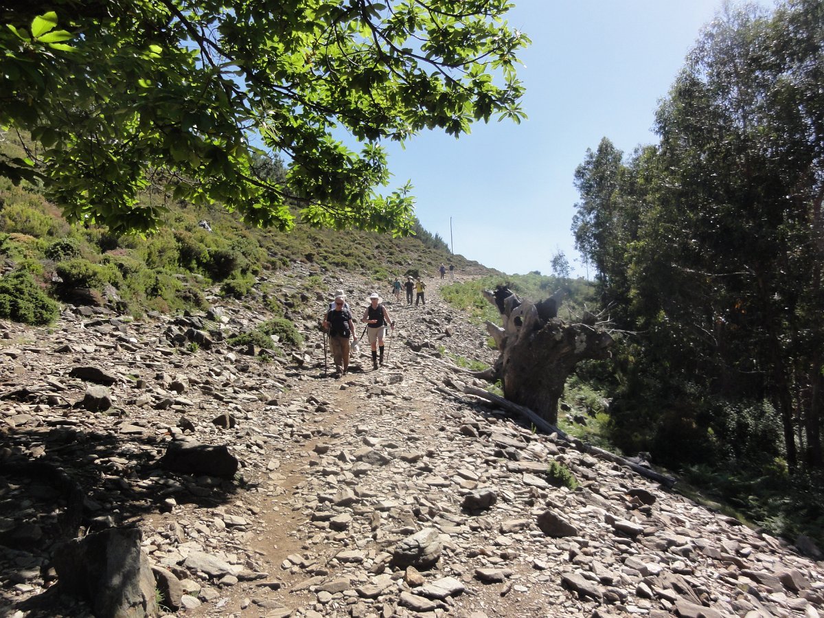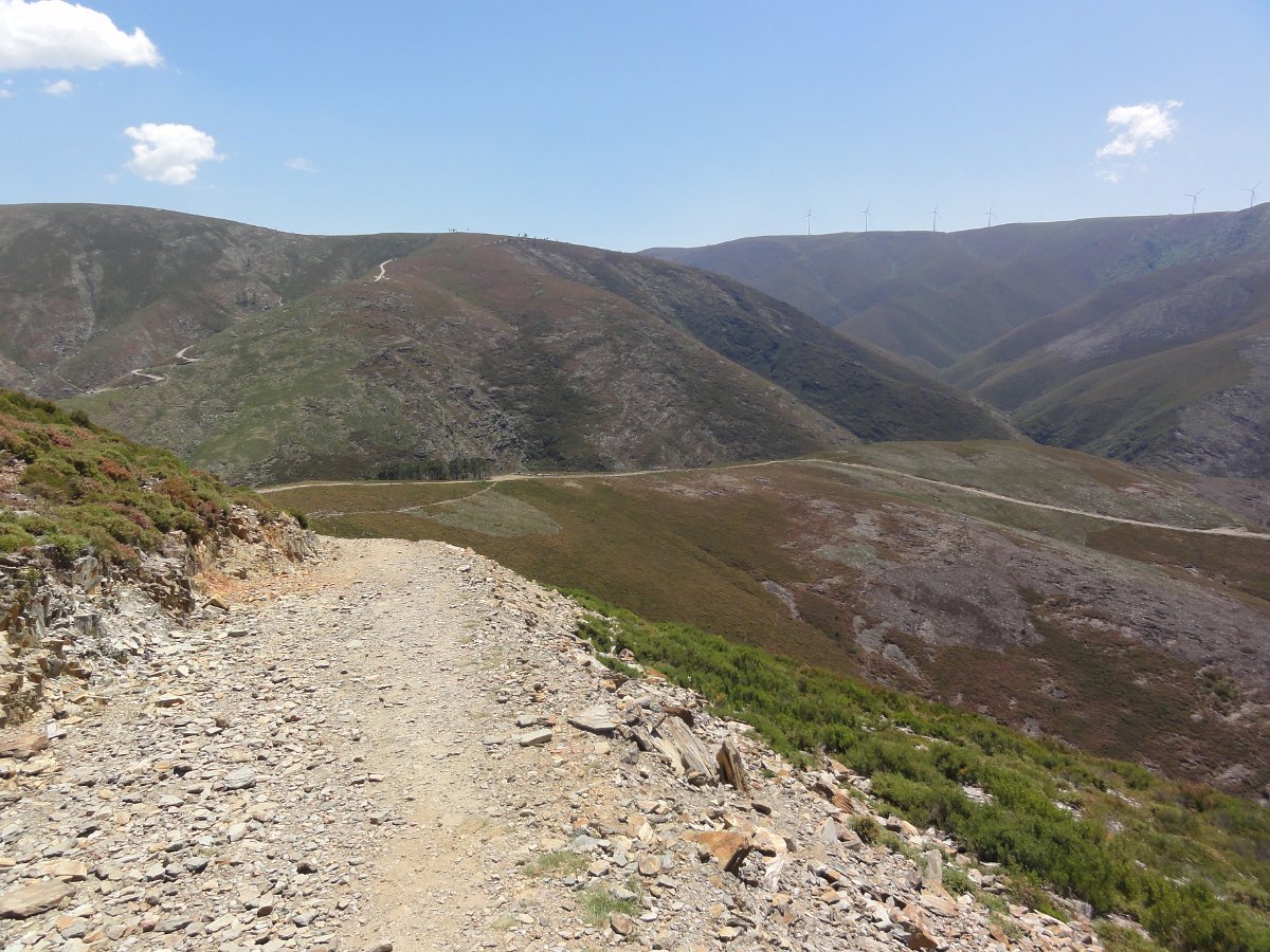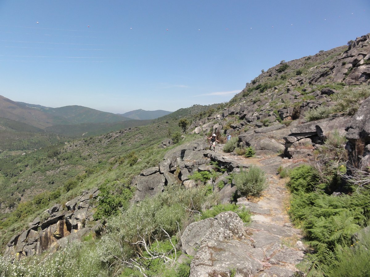 Atravessamos a ribeira de Regoufe e iniciamos mais uma penosa subida, por um amontoado de pedras xistosas soltas, que não se pode chamar de caminho, na direção do Alto de Belide, também chamado de Garra do Alto de Belide, onde conflui o caminho que sobe de Drave e o que desce do Portal do Inferno.
