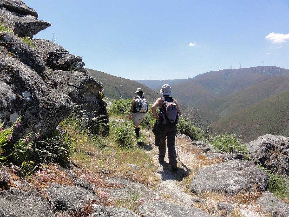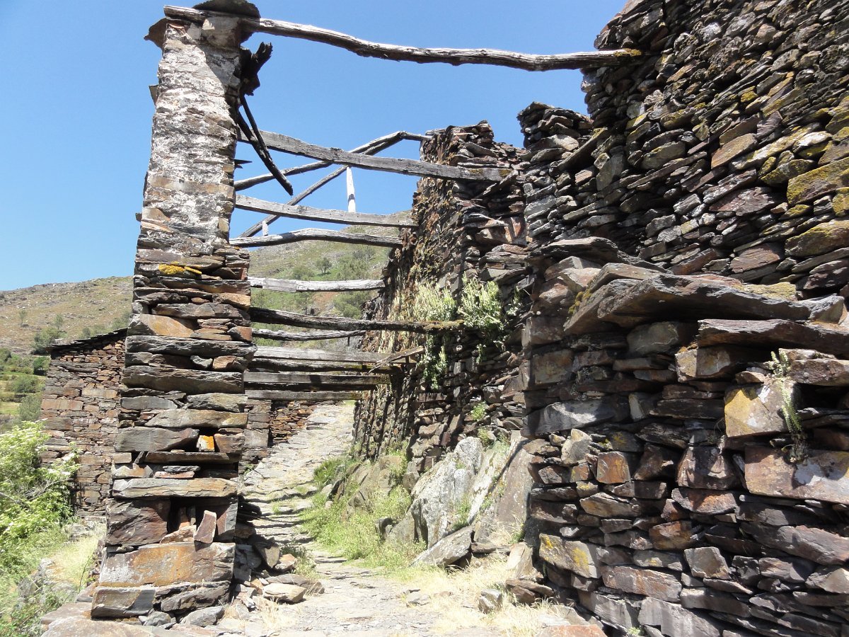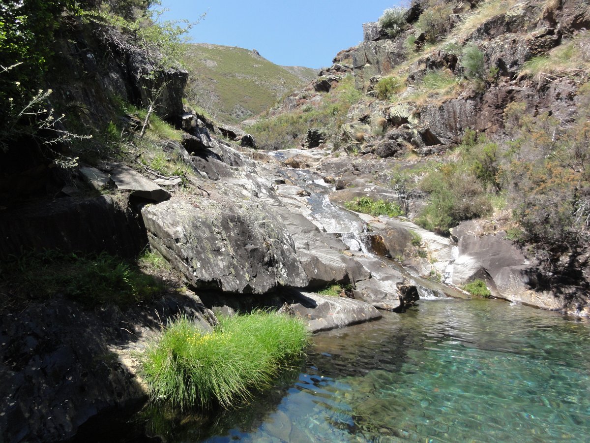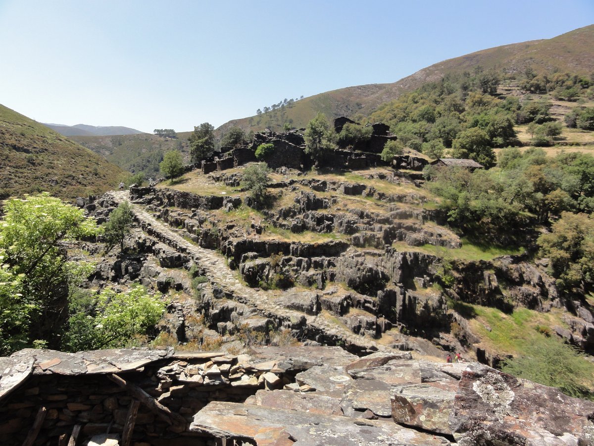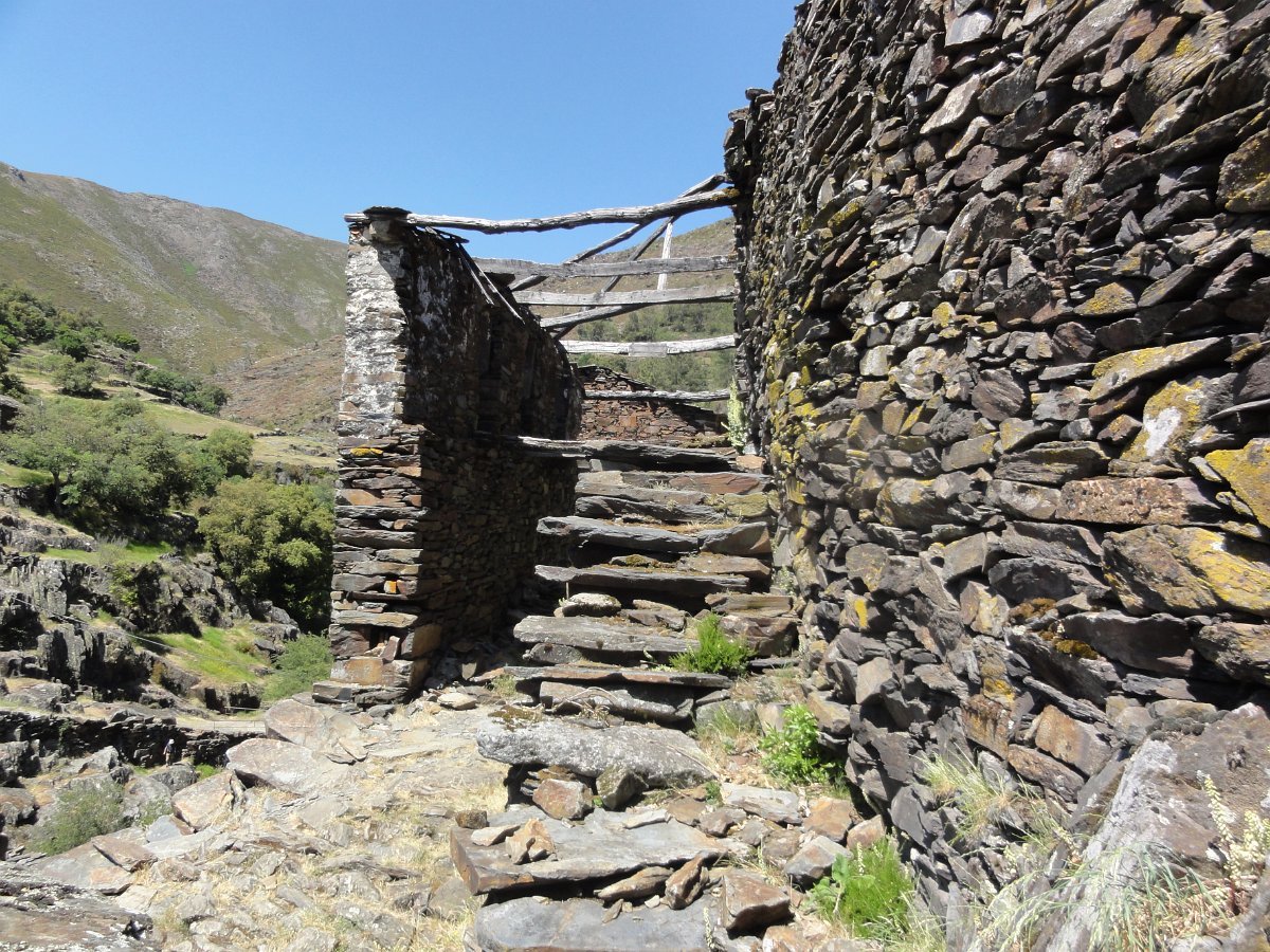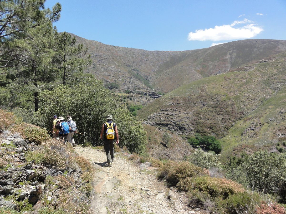 Atravessamos a ribeira de Regoufe e iniciamos mais uma penosa subida, por um amontoado de pedras xistosas soltas, que não se pode chamar de caminho, na direção do Alto de Belide, também chamado de Garra do Alto de Belide, onde conflui o caminho que sobe de Drave e o que desce do Portal do Inferno.