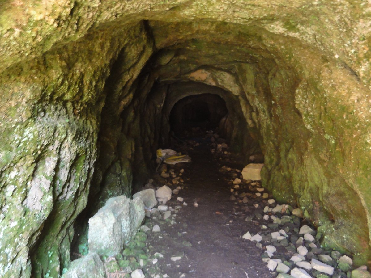 Embora já muito degradada, ainda são bem visíveis as edificações mineiras e as bocas das galerias.