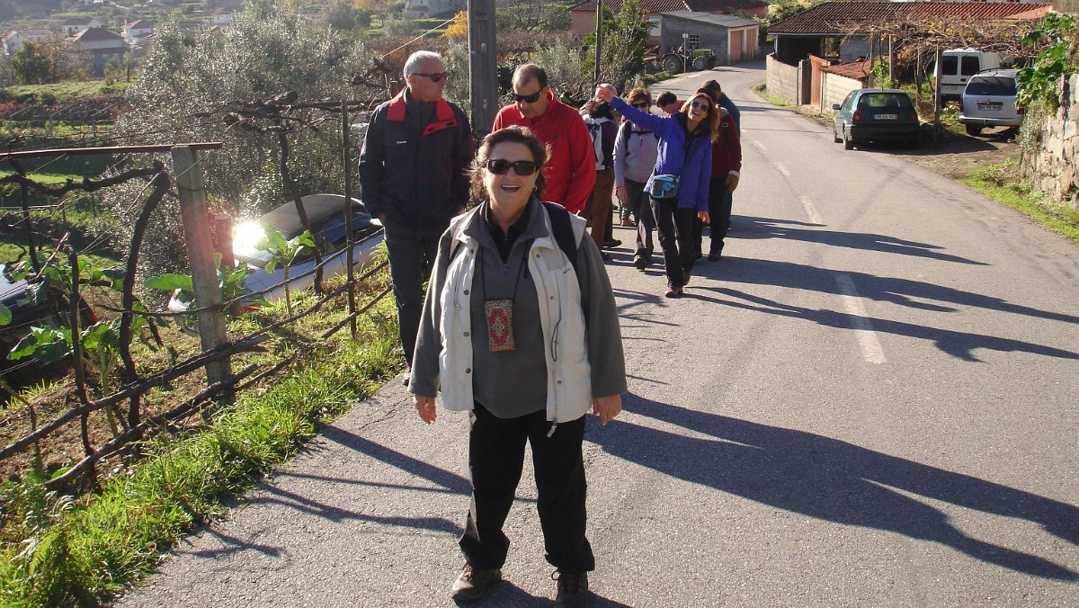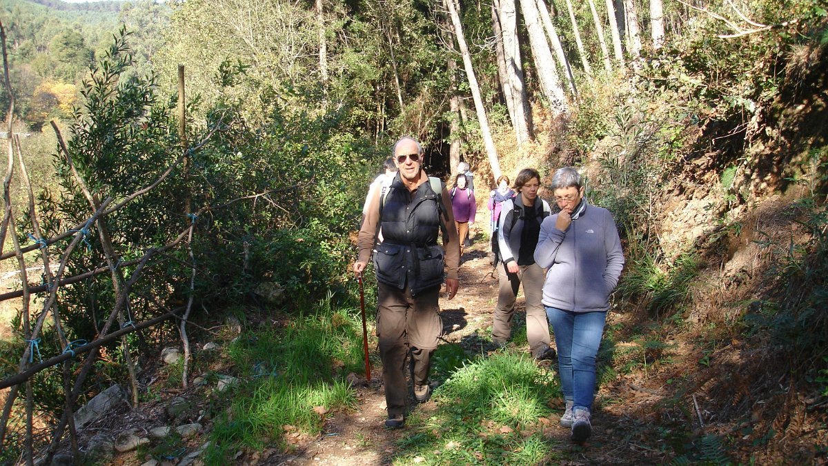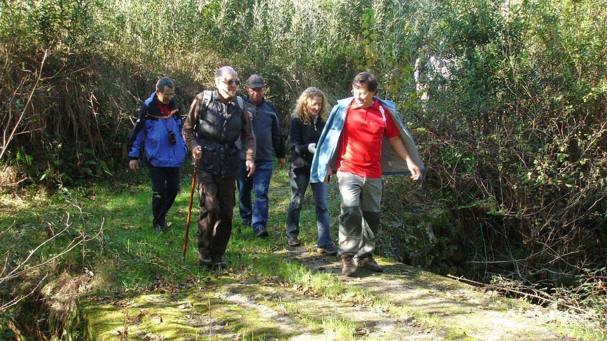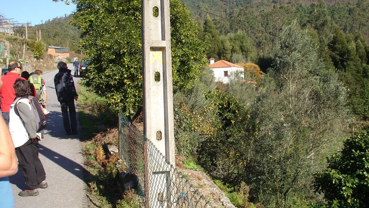 O regresso foi feito pela margem contrária com passagem pelo pequeno cruzeiro assinalando trecho da antiga calçada, que mais abaixo haveríamos de apanhar, caminhando através da mesma tendo sempre por companhia o ribeiro de S. João, cruzando-o sobre um pequeno pontão que nos conduziu através de campos em socalco até ao nosso destino, onde já nos aguardavam o Castro Almeida e a Ana Maria mais o Francisco e a Augusta.