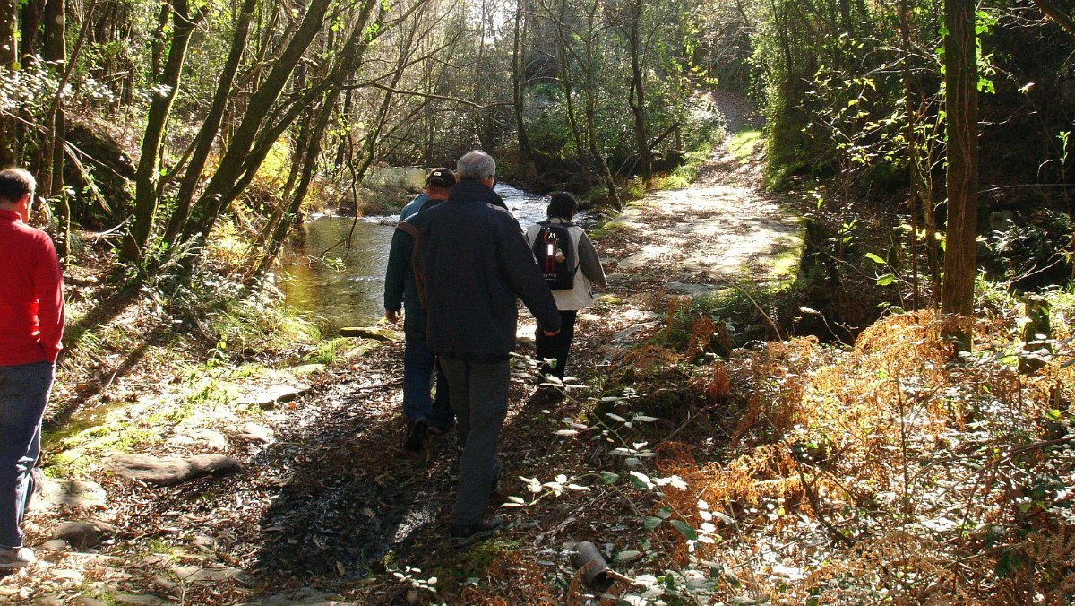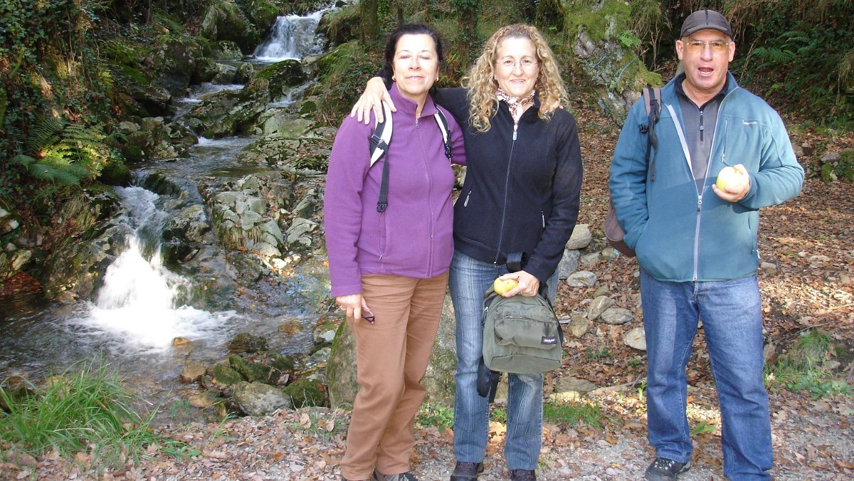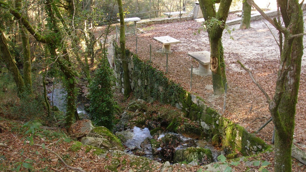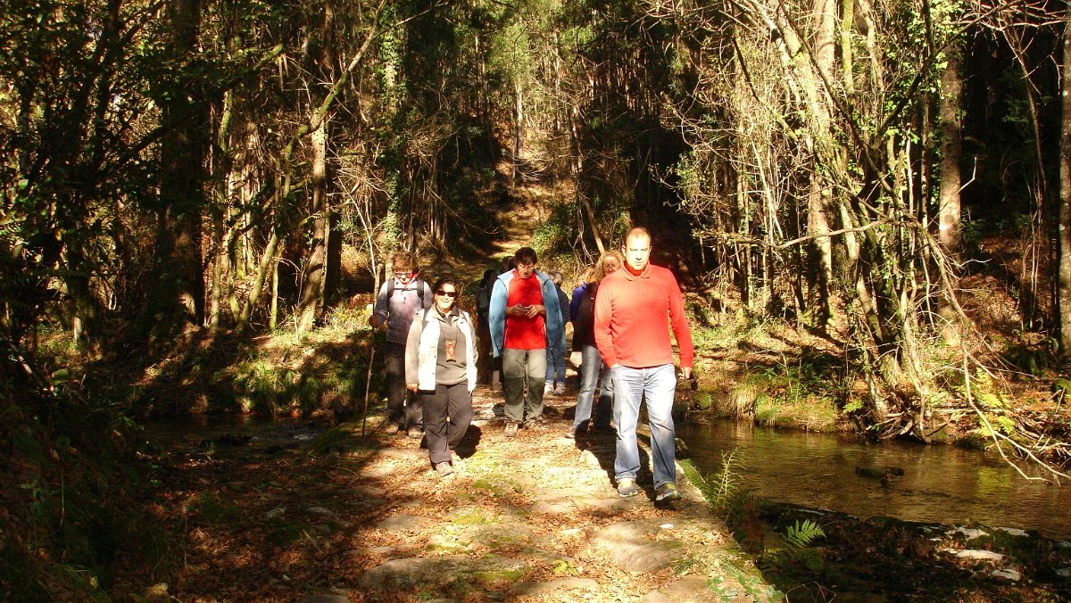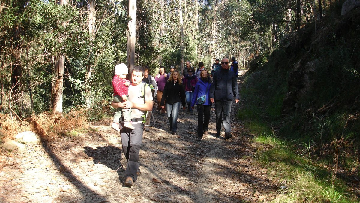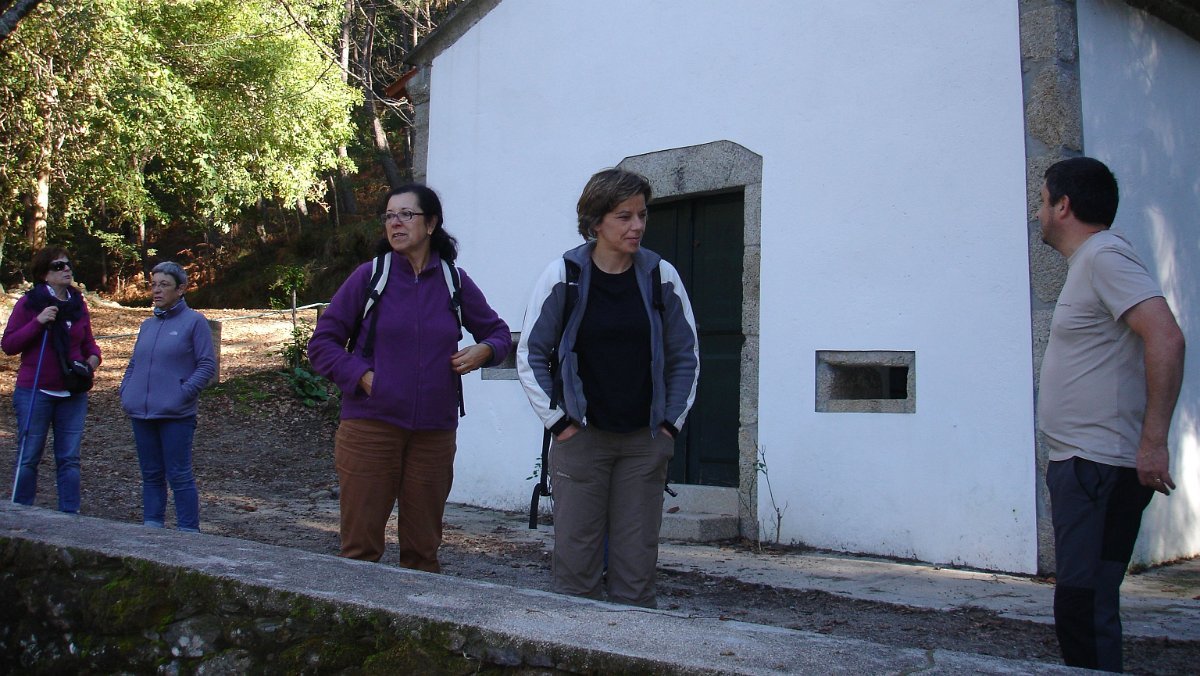 Ali chegados houve que disfrutar do local, aproveitando também para a foto de grupo. Vindos do alto da serra correm dois ribeiros (S. João e Carote) que ladeiam a pequena capela, e que juntam as suas águas após passarem a mesma, e mais abaixo vai dar origem ao rio Labruja.