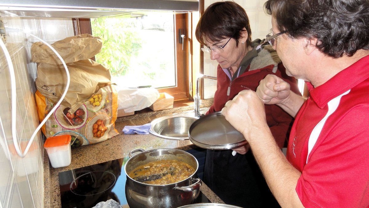 O anfitrião Pimenta, já nosso conhecido pelos seus excecionais dotes culinários evidenciados em anteriores encontros, assessorou a "Chef" Dores, que nos presenteou com uma Tripalhada à moda do Porto, muito bem confecionada.