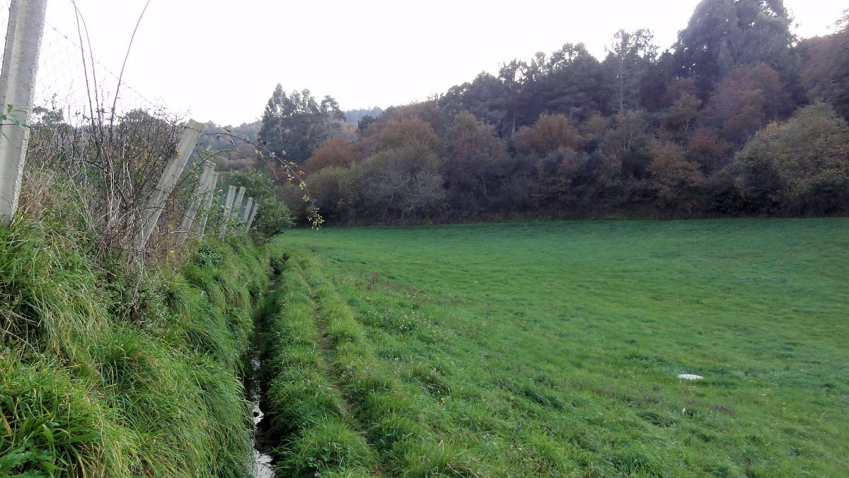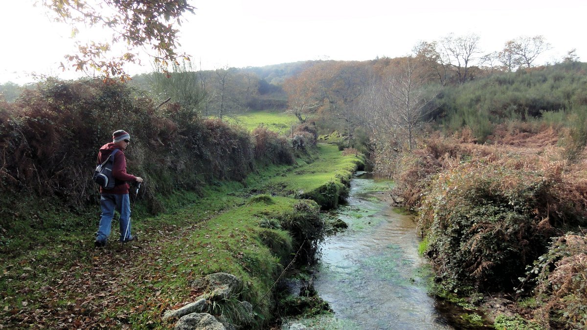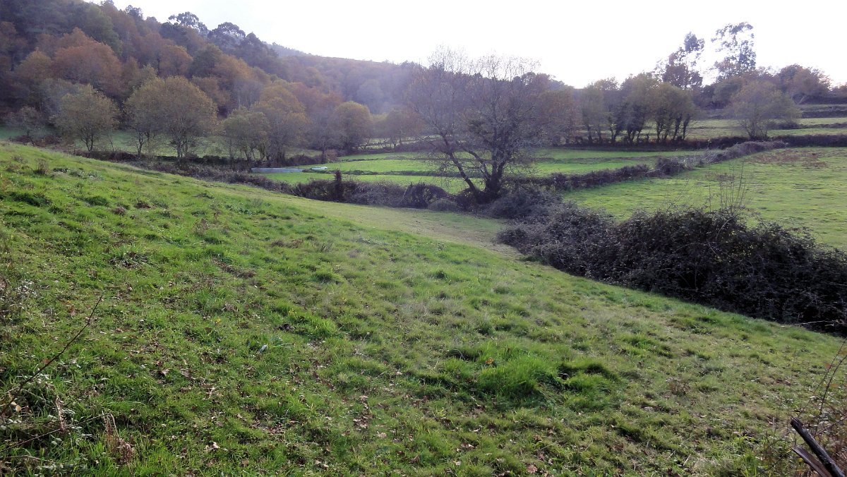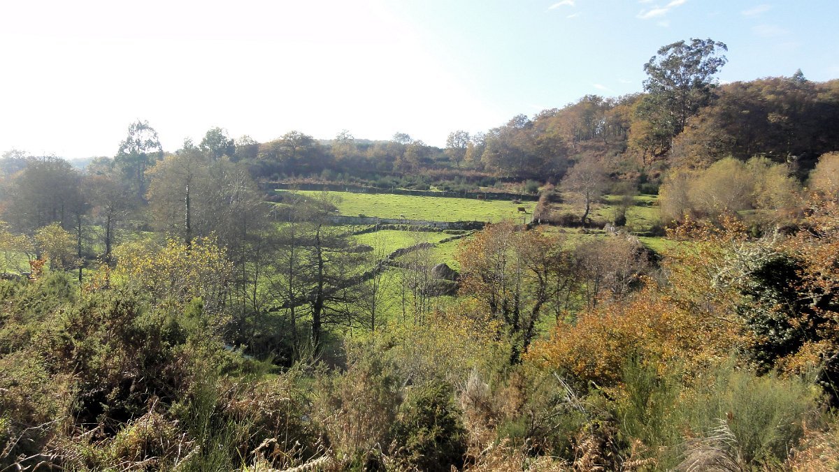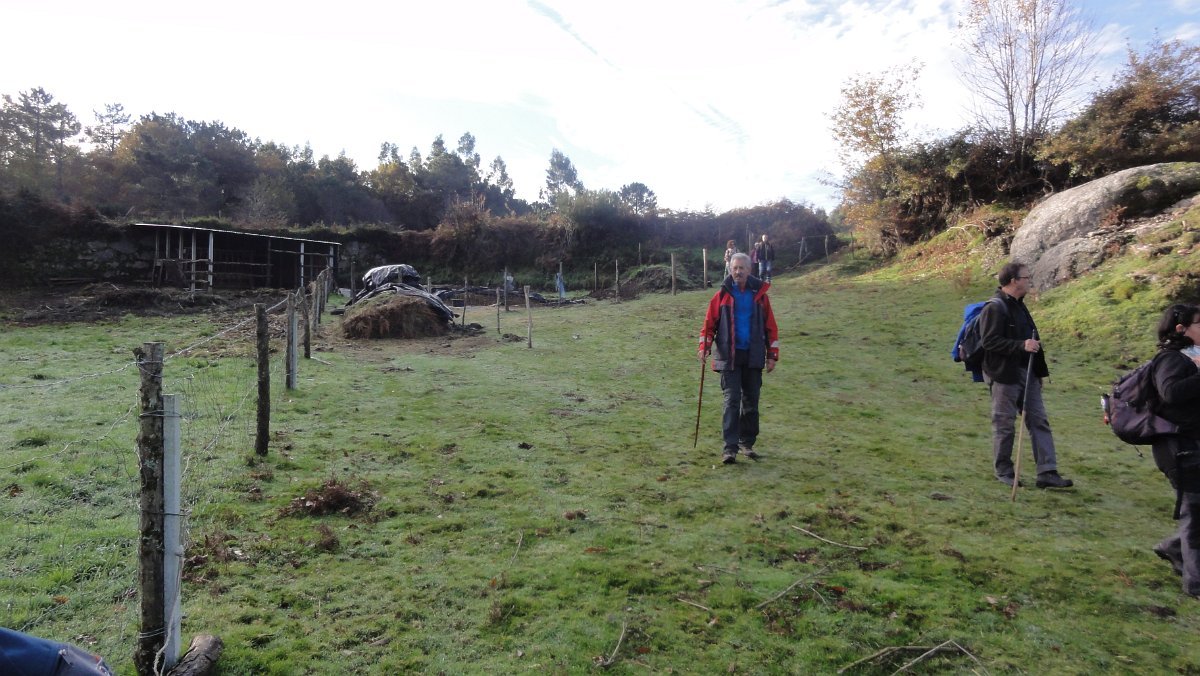 Um pouco mais à frente deixamos o alcatrão e seguimos um caminho de acesso aos campos até a uma exploração agrícola, onde apanhamos uma levada de servidão de diversos lameiros, que atravessamos com dificuldade, já que havia que transpor diversas vedações de terrenos e campos, mas lá fomos pelas extremas, fugindo aos lameiros e não incomodando o gado até um moinho, meio perdido no denso matagal, onde terminava essa levada.
