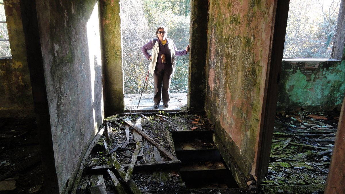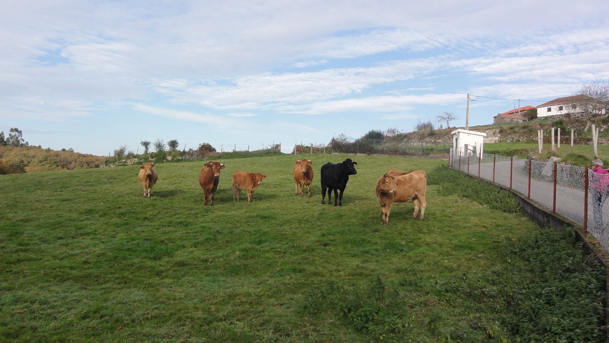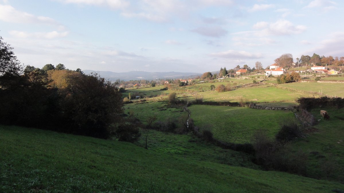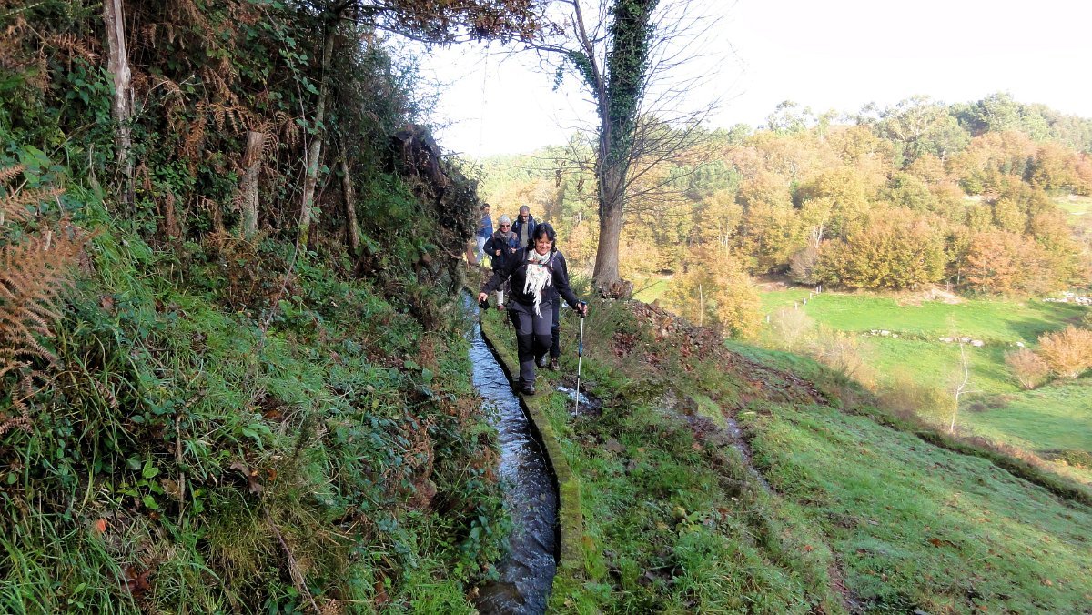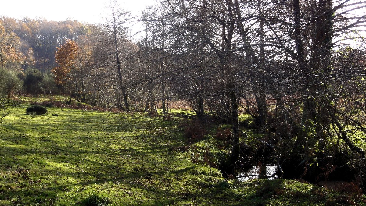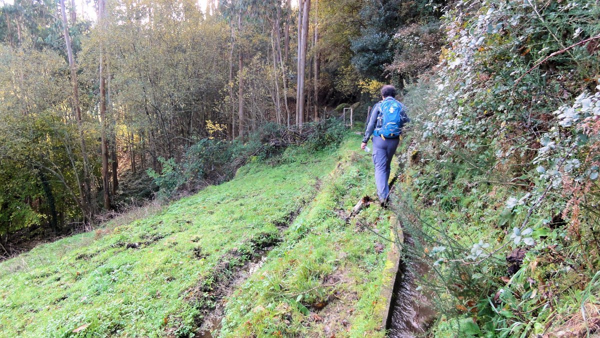Um pouco mais à frente deixamos o alcatrão e seguimos um caminho de acesso aos campos até a uma exploração agrícola, onde apanhamos uma levada de servidão de diversos lameiros, que atravessamos com dificuldade, já que havia que transpor diversas vedações de terrenos e campos, mas lá fomos pelas extremas, fugindo aos lameiros e não incomodando o gado até um moinho, meio perdido no denso matagal, onde terminava essa levada.