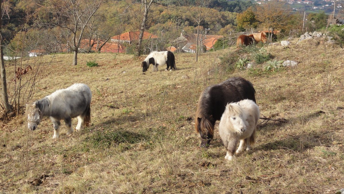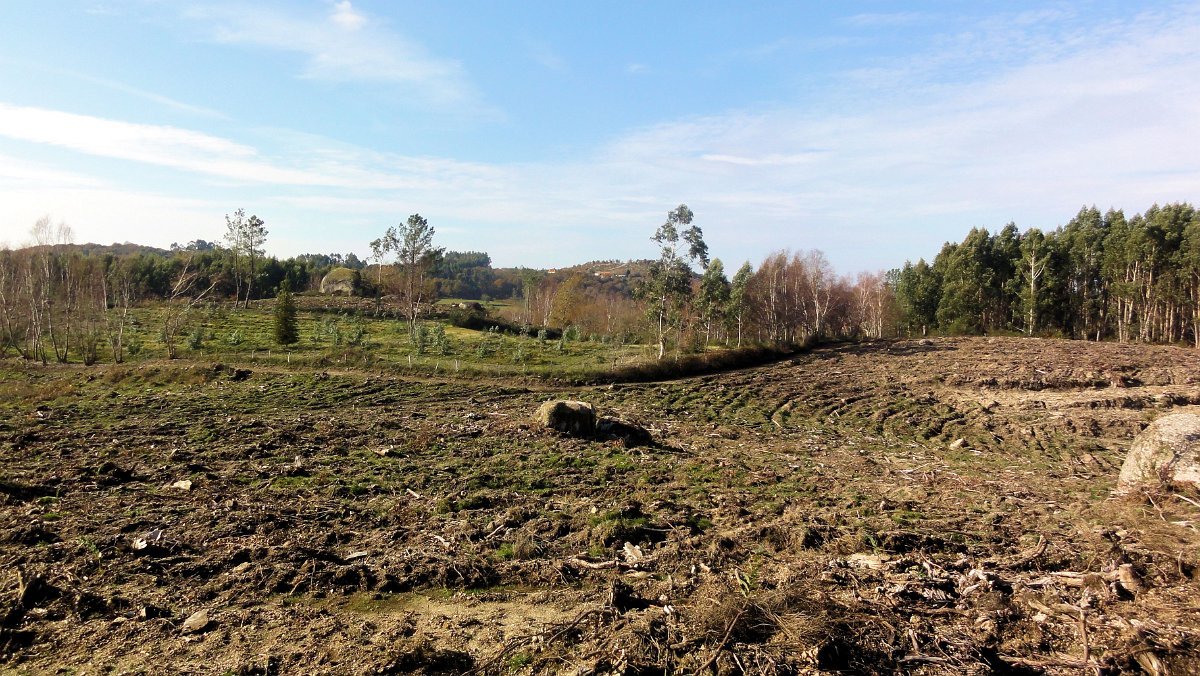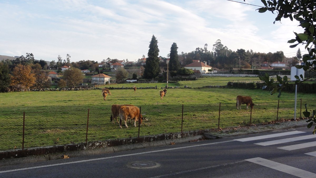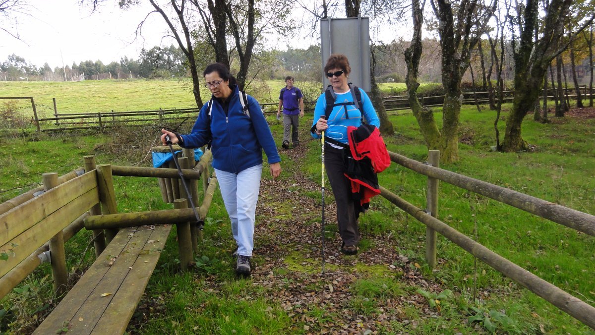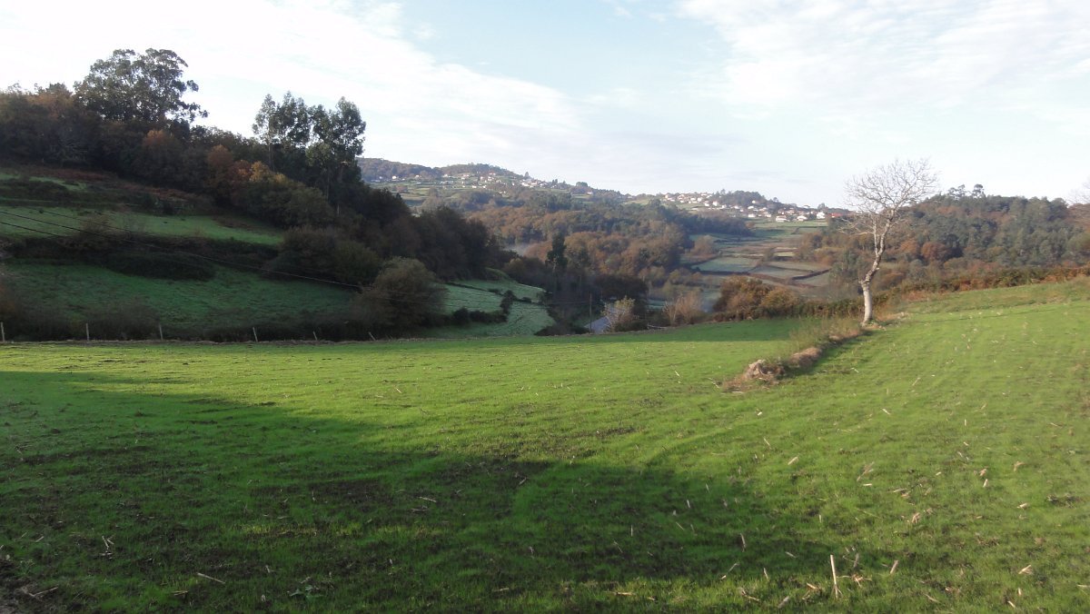Um pouco mais à frente deixamos o alcatrão e seguimos um caminho de acesso aos campos até a uma exploração agrícola, onde apanhamos uma levada de servidão de diversos lameiros, que atravessamos com dificuldade, já que havia que transpor diversas vedações de terrenos e campos, mas lá fomos pelas extremas, fugindo aos lameiros e não incomodando o gado até um moinho, meio perdido no denso matagal, onde terminava essa levada.