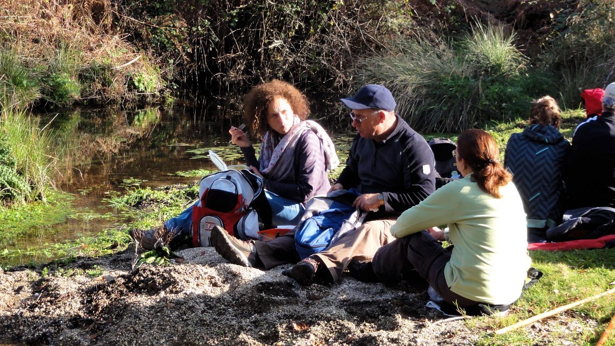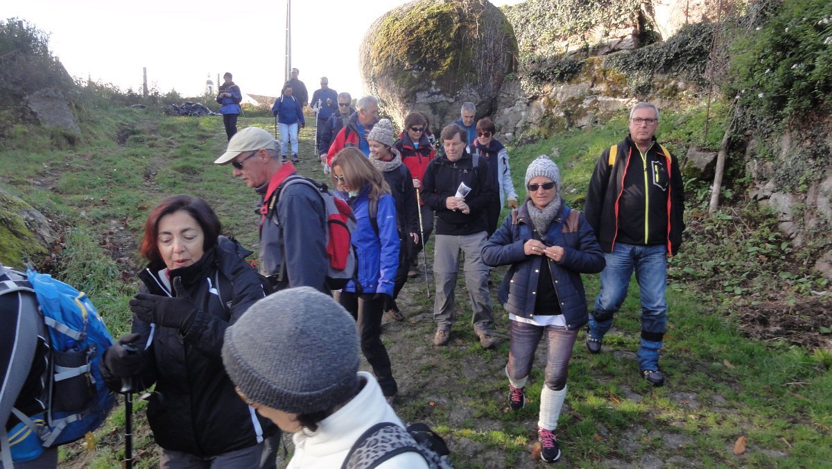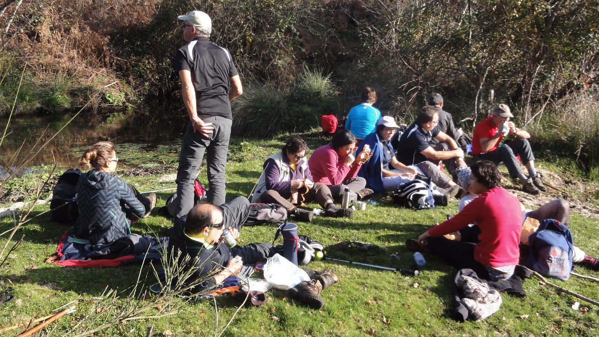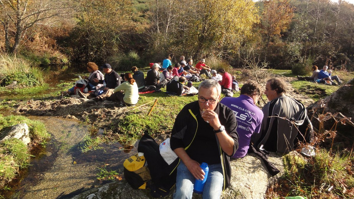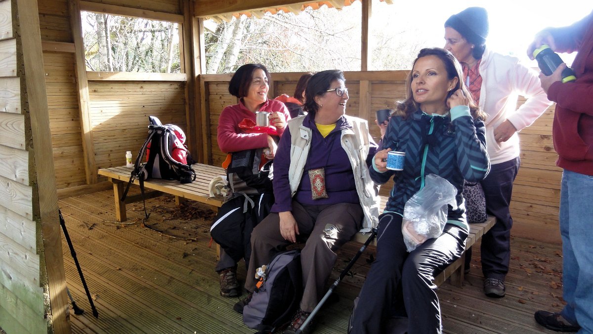 Não ouvimos o sino, nem vimos o ouro e ainda menos a cidade, mas os bancos da Charca Pedagógica serviram para fazer a pausa matinal e meter qualquer coisa à boca. Aproveitou-se ainda para fazer o levantamento de quem queria ficar para o “lanche”, que não estava previsto no programa - falhanço grave!, mas entretanto reclamado pelos presentes, já que era a caminhada de Natal…, e no Natal há que celebrar!