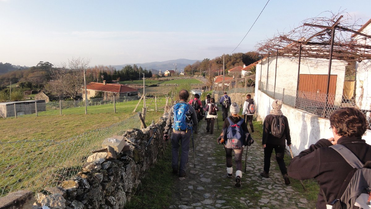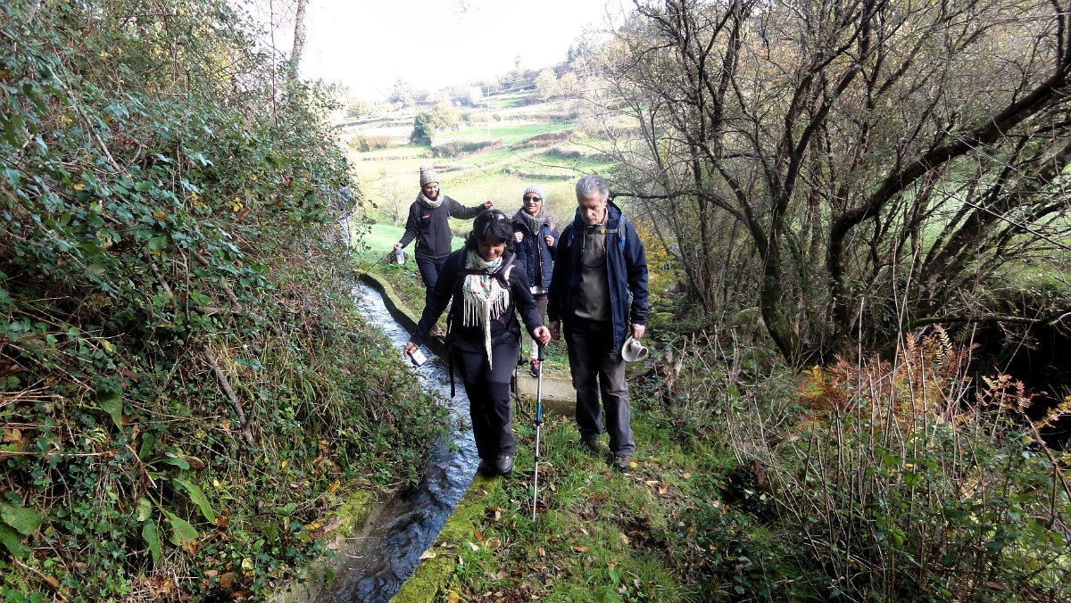 Transposta mais uma vedação, tomamos outra levada de servidão dos verdejantes prados e campos de cultivo do lugar de Aldeia. A progressão era então lenta, pois o terreno pesado e a muita água dos lameiros prejudicava o avanço do grupo e provocou mesmo algumas pequenas escorregadelas e alguns “encharcanços” dos mais incautos, que não levavam o calçado adequado para estas paragens.