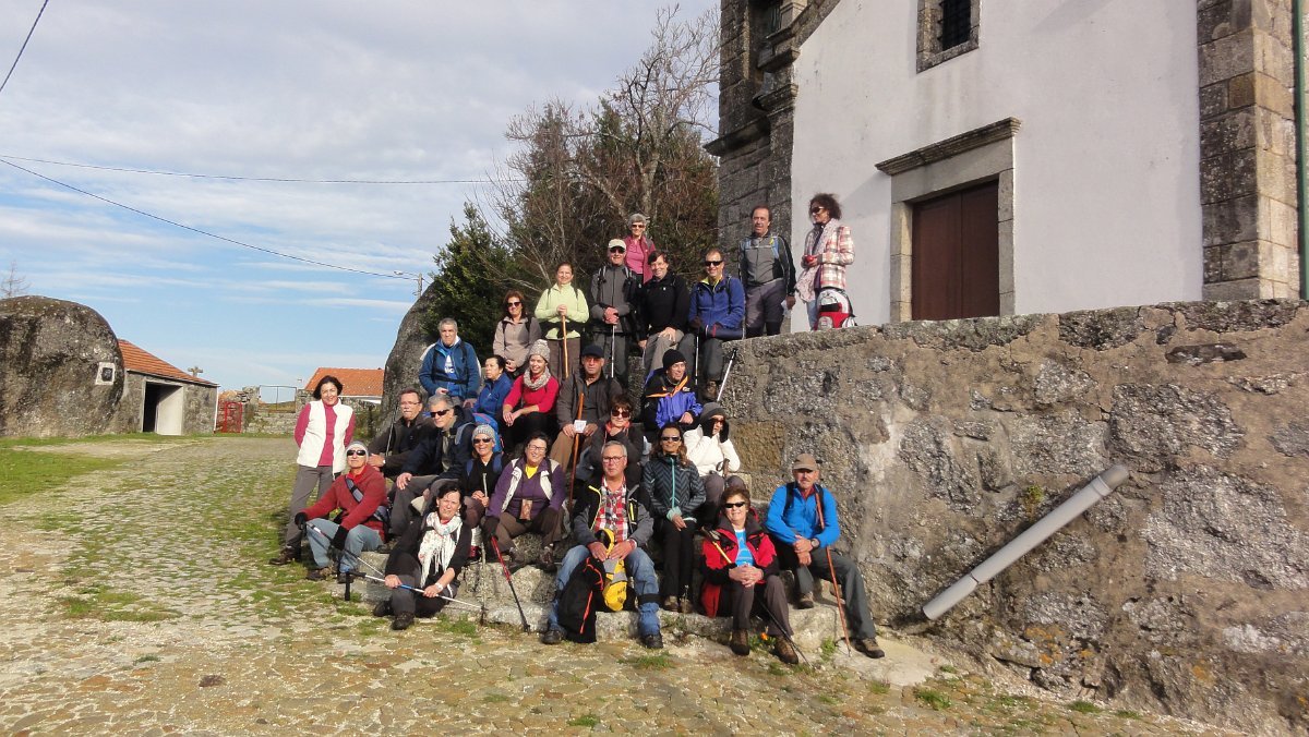 Chegados ao alcatrão, o ritmo normalizou e subimos pela "Estrada de Fátima" para o lugar da Aldeia, em Vascões, tendo feito uma paragem na antiga Igreja Matriz, onde aproveitamos para fazer a tradicional foto do grupo.
