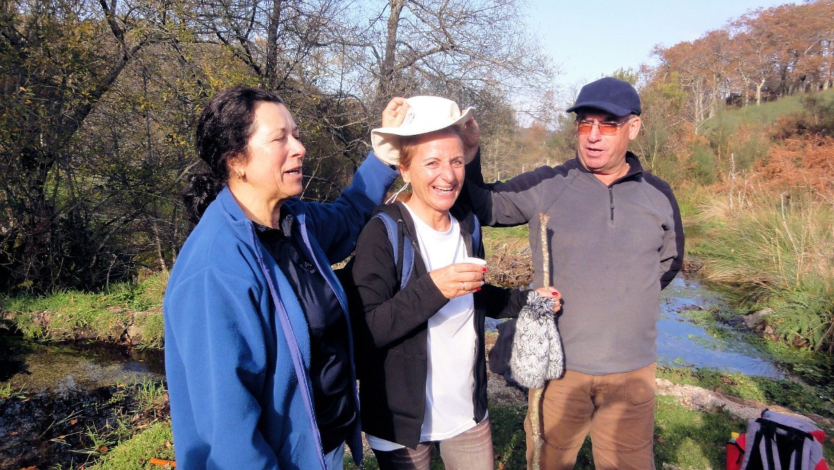 Partilhado o farnel e descansadas as pernas, chegou o momento sempre solene da cerimónia do batismo de duas novas companheiras, a Maria Berta Pires e a Francisca Vieira, que se estrearam nestas lides, mas demonstraram uma capacidade de adaptação notável, já que mesmo com os pés encharcados e braços arranhados, conseguiram superar as dificuldades com destreza e satisfação.