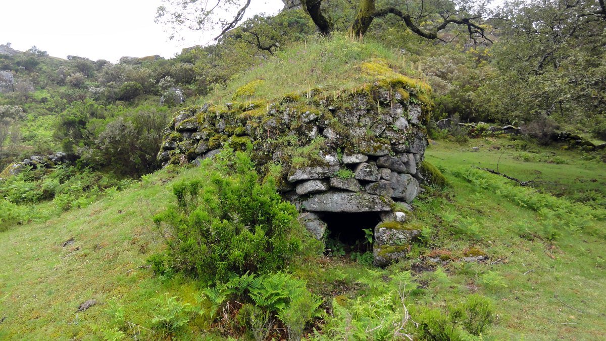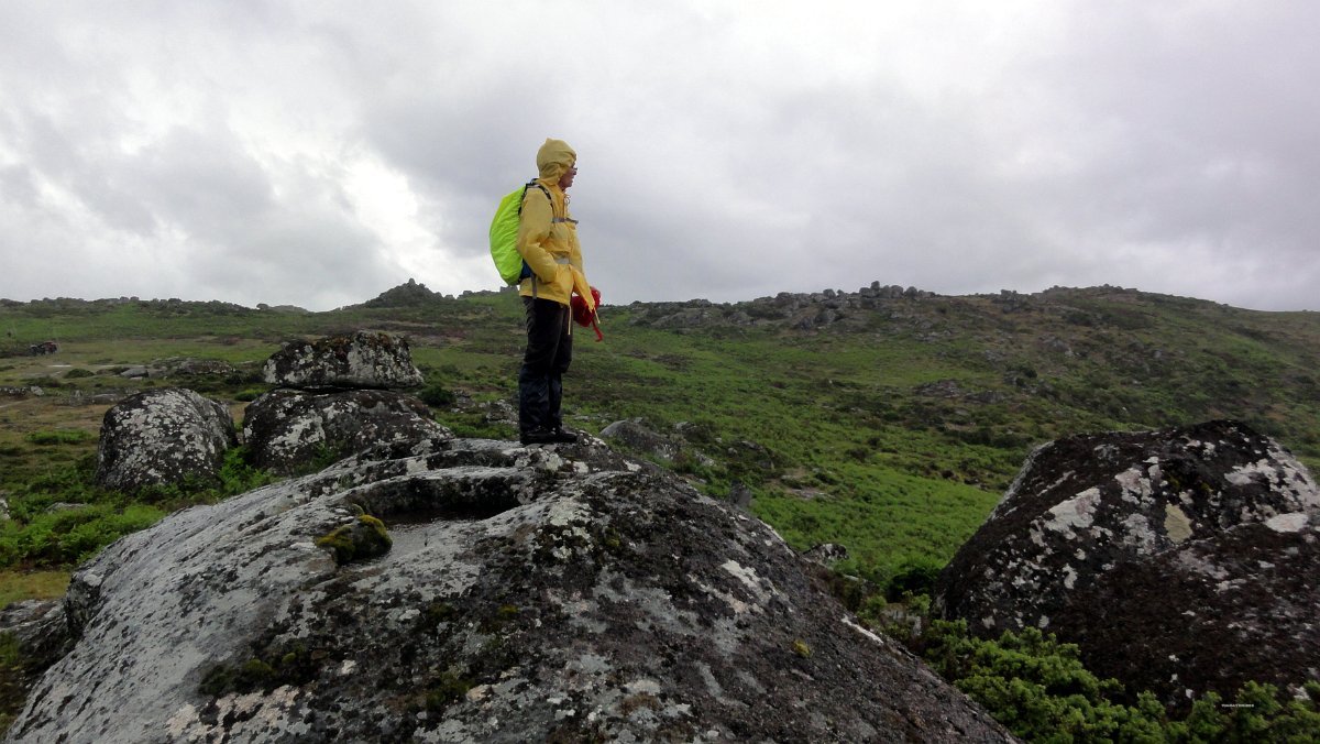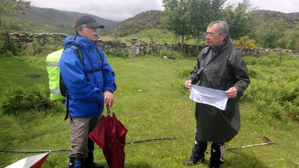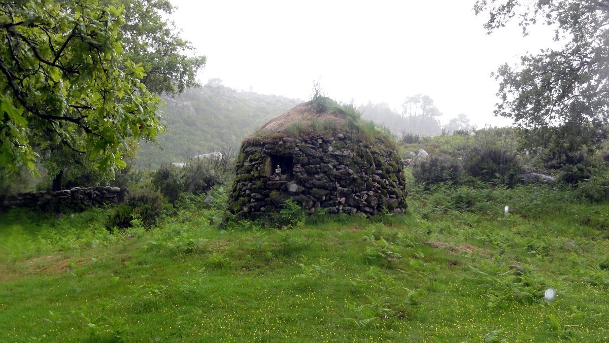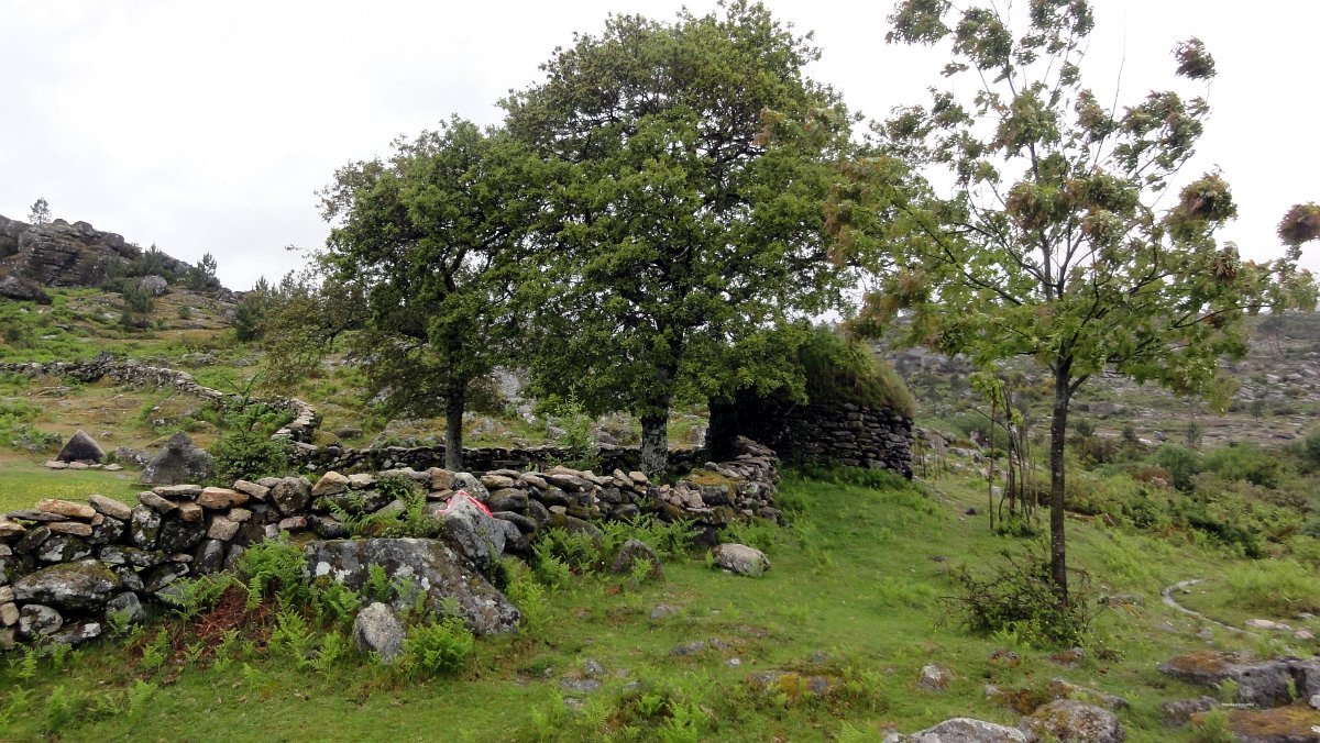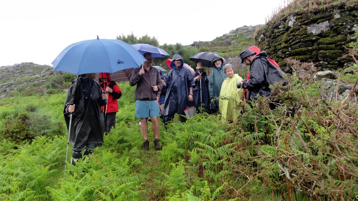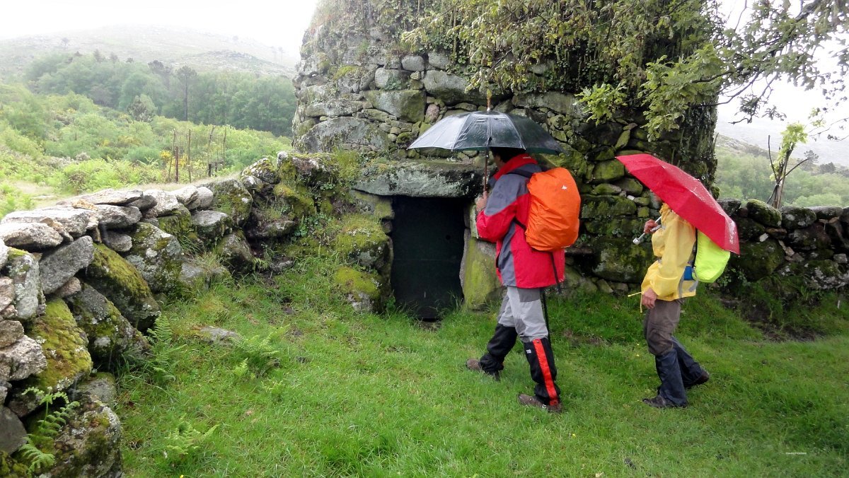 O santo não quis nada connosco e a chuva intensa persistia, mas havia que prosseguir e subimos o rio Perdiz, até ao curral da Escravilheira, onde tínhamos prevista a pausa para almoço antes de rumar à serra Amarela, para visitar mais algumas cabanas (ou fornos) nas suas margens. Mas com o tempo assim, fomos forçados ao regresso imediato à Chão do Couto, com a esperança de arranjar abrigo numa das cabanas.