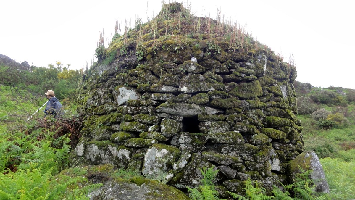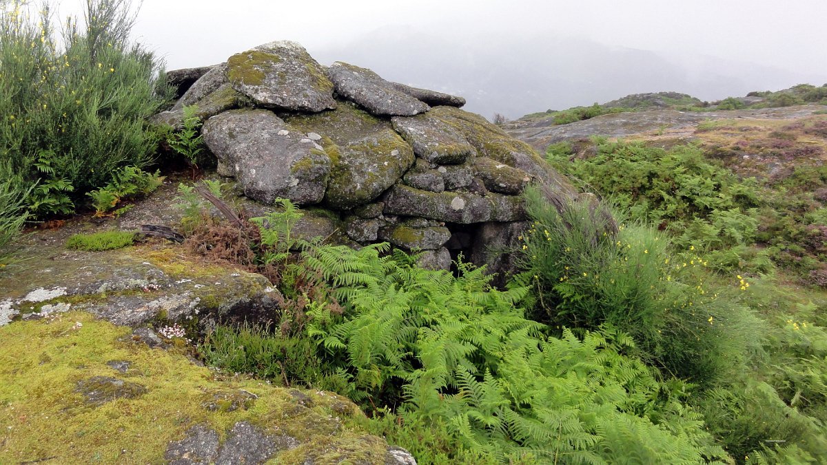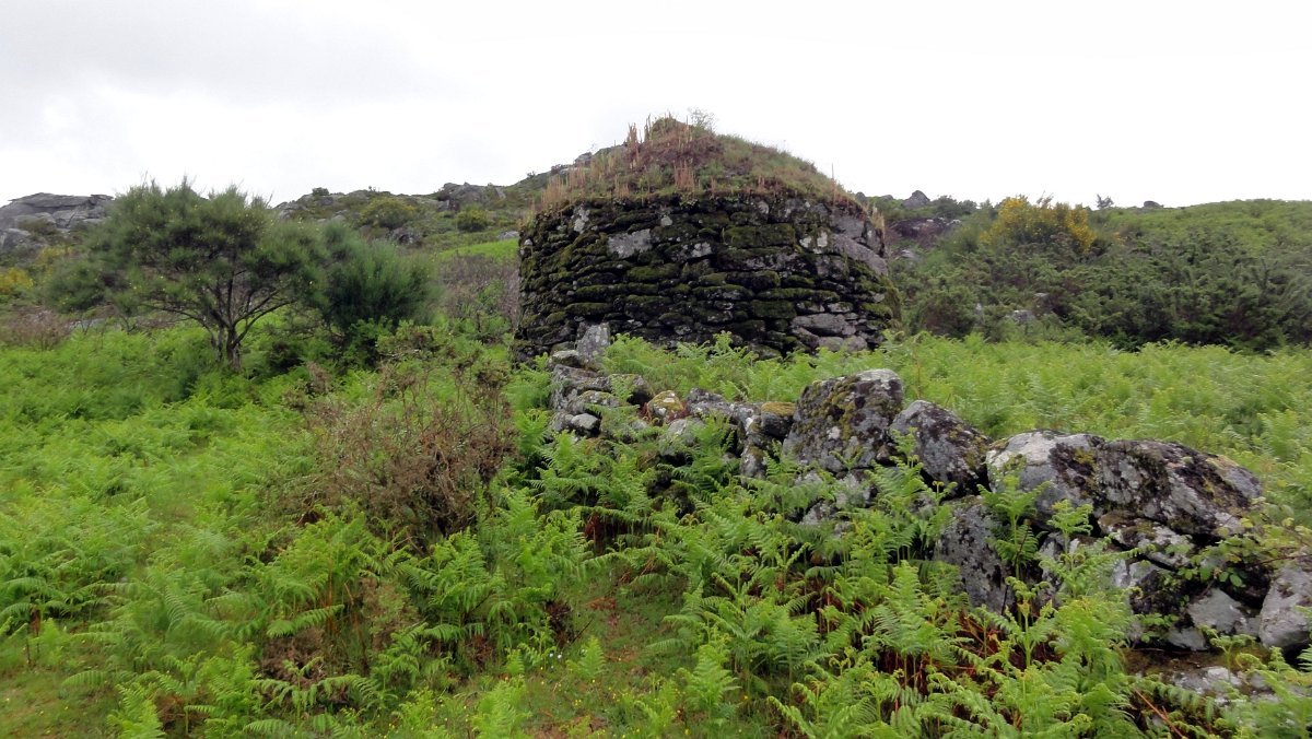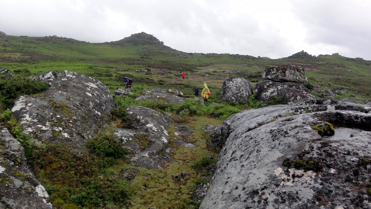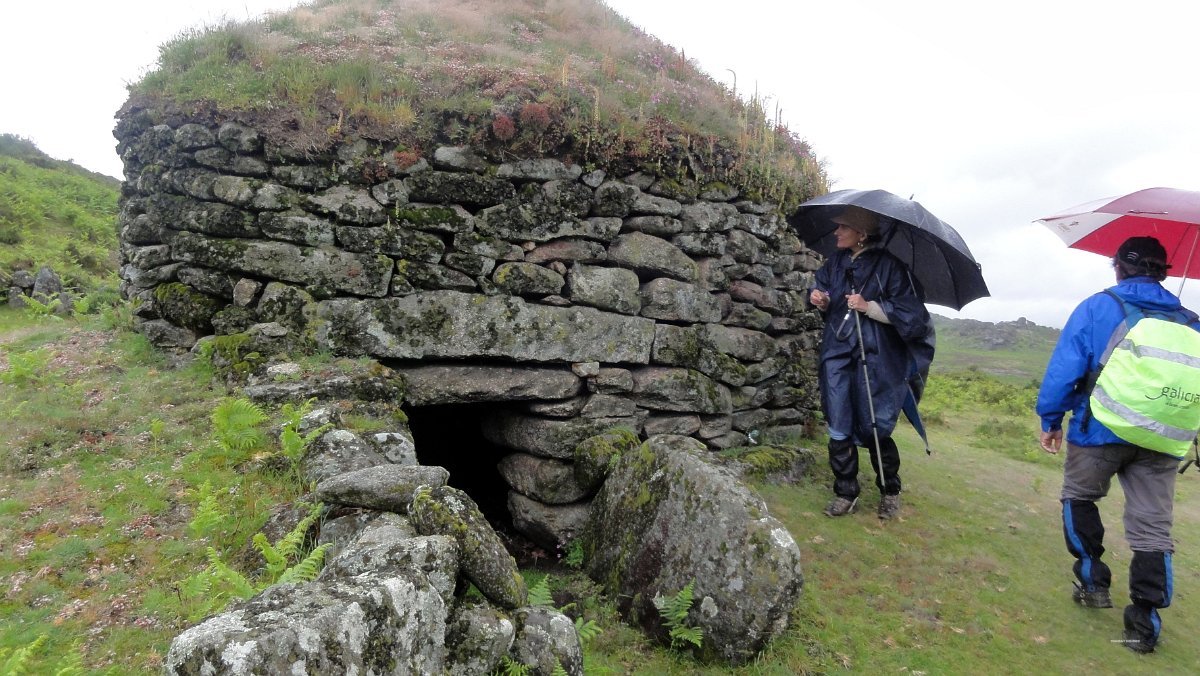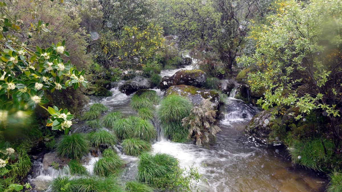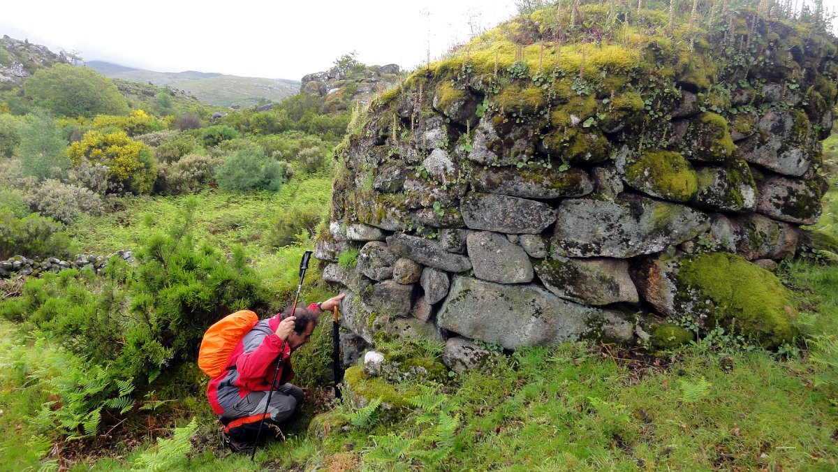 O santo não quis nada connosco e a chuva intensa persistia, mas havia que prosseguir e subimos o rio Perdiz, até ao curral da Escravilheira, onde tínhamos prevista a pausa para almoço antes de rumar à serra Amarela, para visitar mais algumas cabanas (ou fornos) nas suas margens. Mas com o tempo assim, fomos forçados ao regresso imediato à Chão do Couto, com a esperança de arranjar abrigo numa das cabanas.