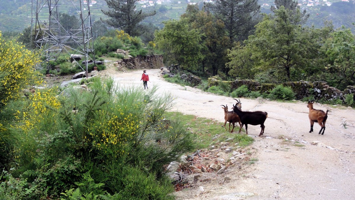 Encharcados, continuamos a descida para Cidadelhe onde nos cruzamos com um rebanho de cabras, que uma pastora tentava controlar no regresso às cortes.