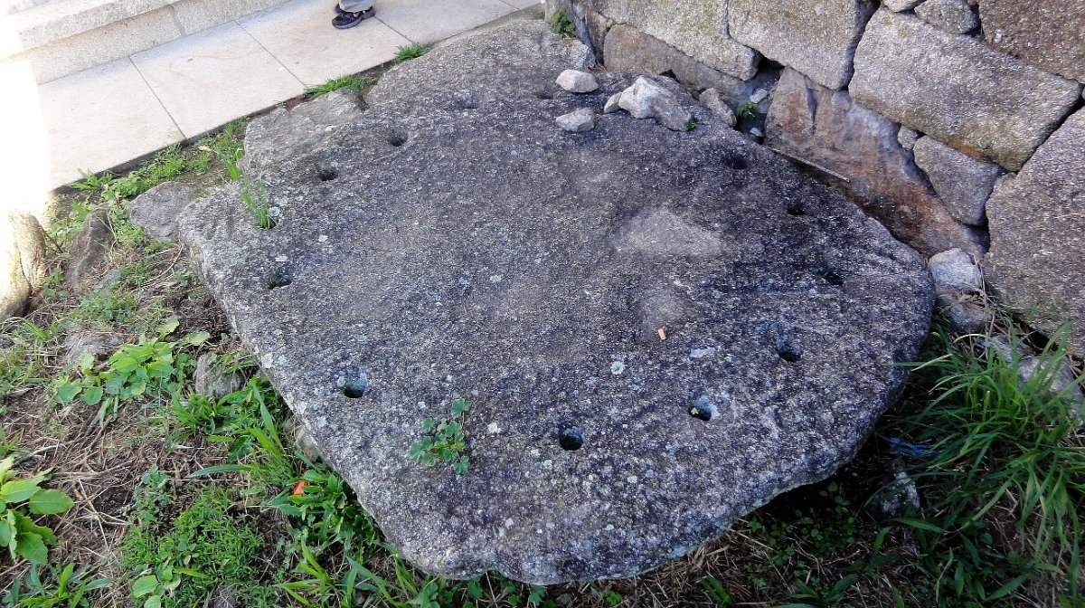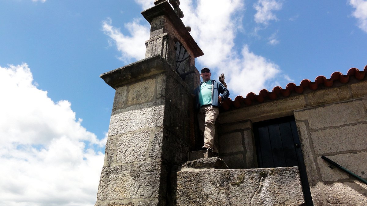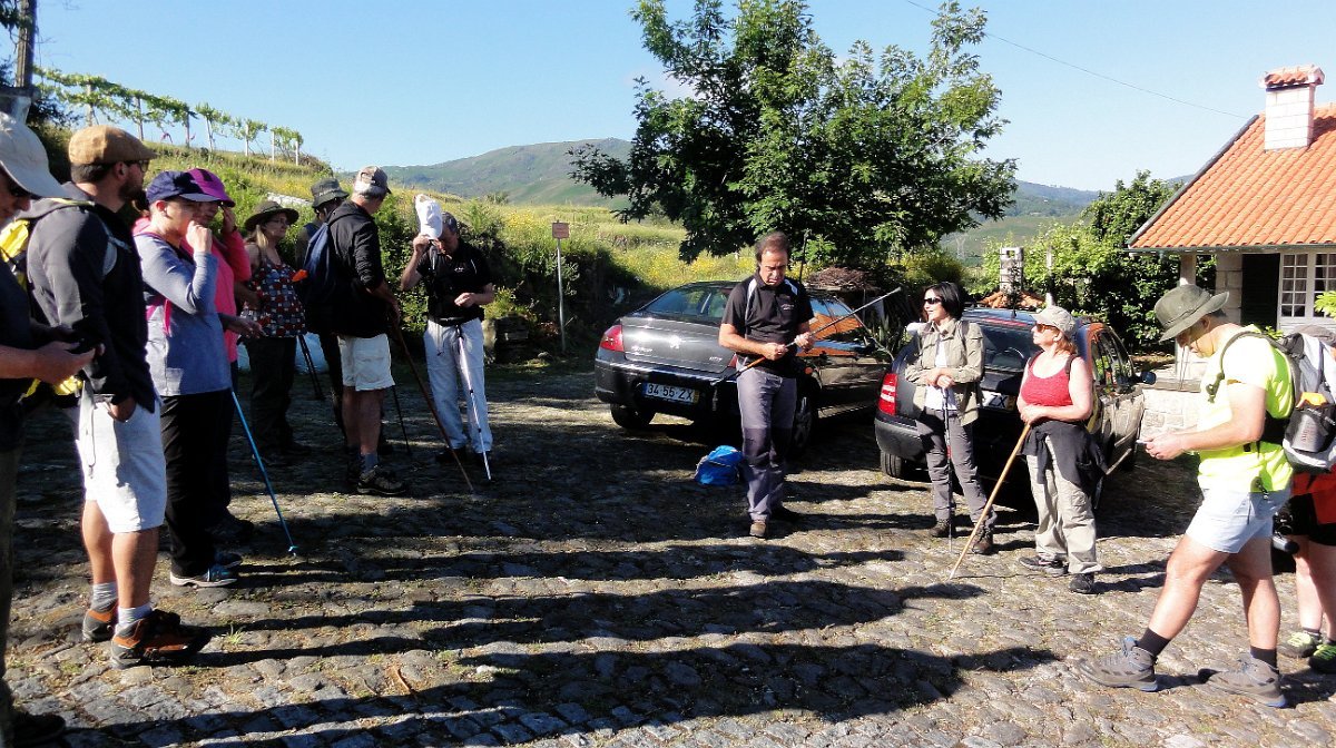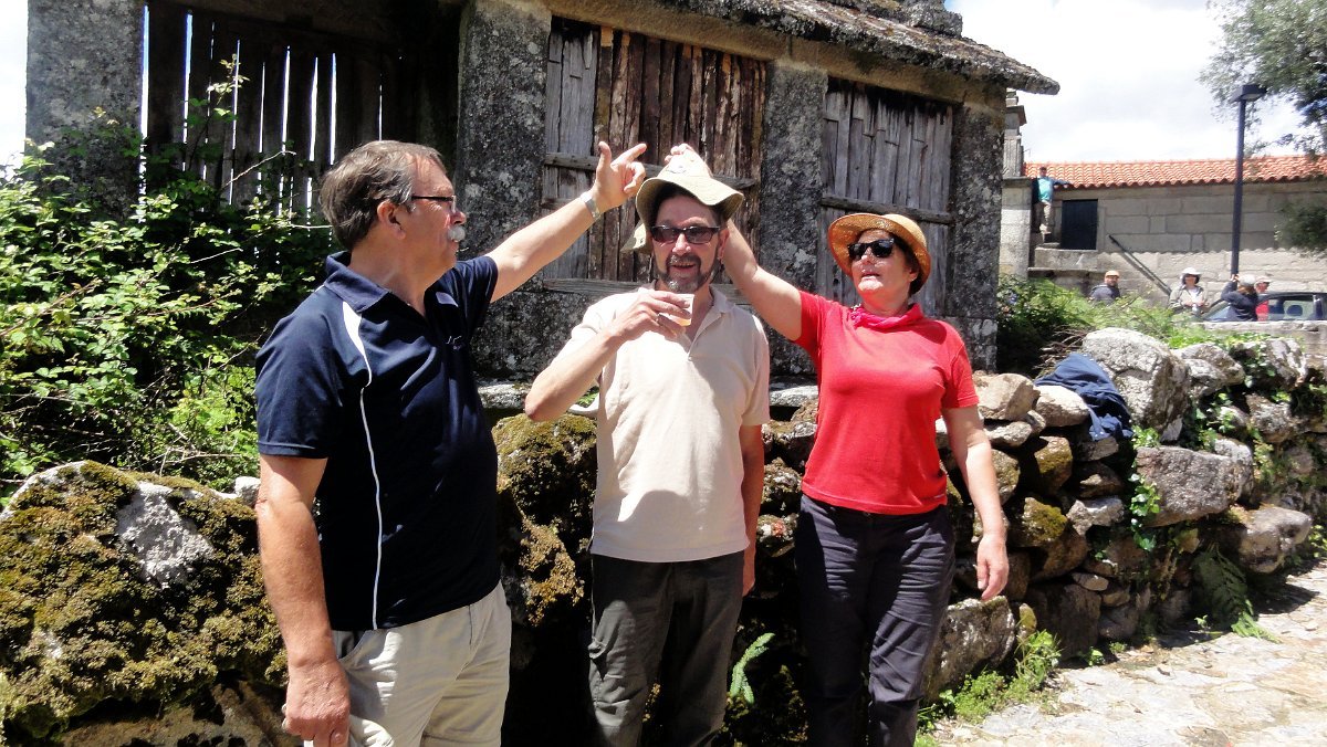 Ficamos de pé ainda mais atrás, pois a coisa estava mesmo muito pior do que a Associação Péd´Rios do Germil nos tinha prevenido, mas lá fomos descendo por uma velha calçada para Paradela, onde fizemos uma pausa no largo da capela de S. Pedro, defronte de mais um núcleo de típicos espigueiros comunitários.