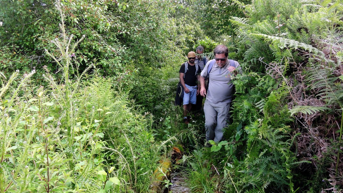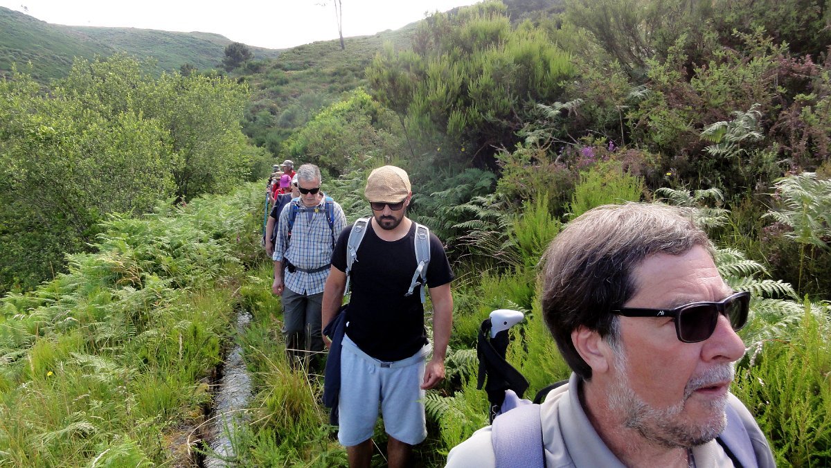A coisa começou logo mal, pois a levada estava completamente tapada com vegetação alta, pelo que havia que abrir caminho com o que havia à mão. Tomaram a dianteira o Miguel e o Cocas, que a golpe de varapau foram abrindo caminho, afastando as silvas e mato que nos castigaram todos, especialmente os incautos que apareceram de calções!