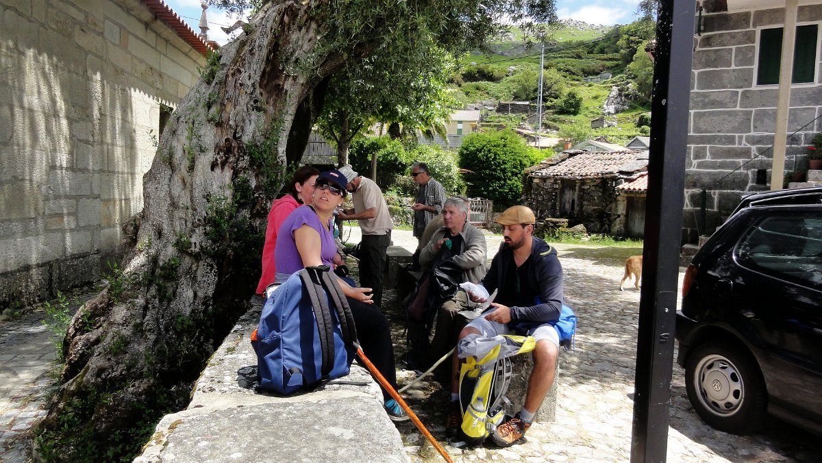 Foi neste cenário que tiramos a habitual foto de grupo, com alguns a protestar pela tardia hora do “comer”, mas a paragem estava prevista para Germil, pelo que havia que fazer mais uma curta subida até ao largo da igreja da aldeia, aproveitado o adro para pousar o farnel.